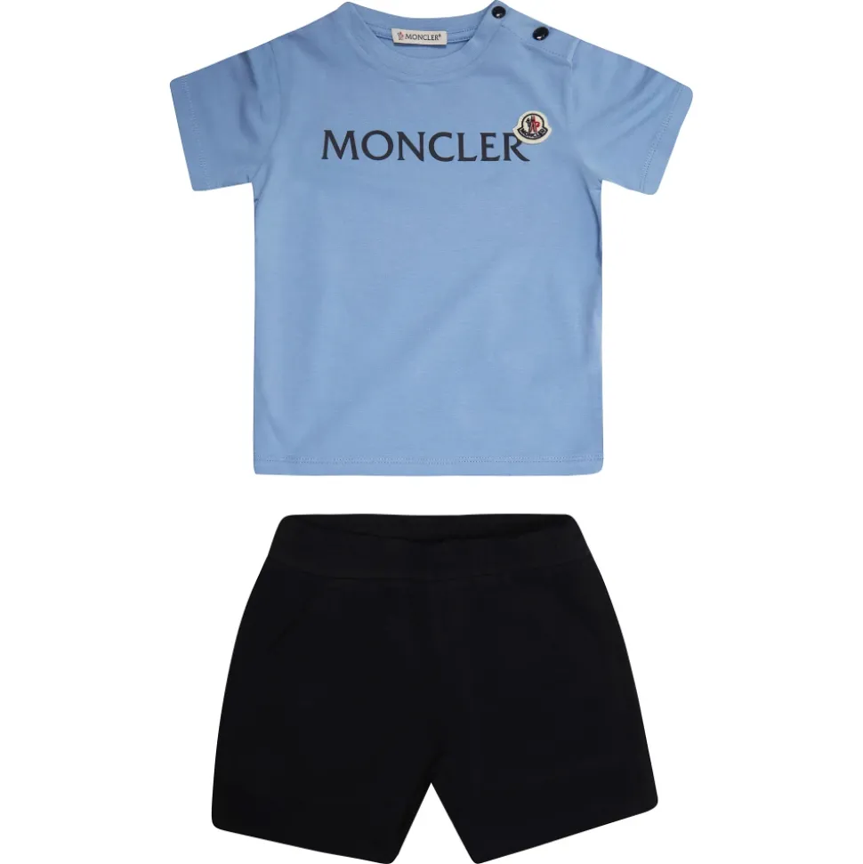 Moncler Completo TS con Bermuda er et todelt sæt, der kombinerer en T-shirt med matchende bermudashorts for et koordineret hverdagslook. Sættet fokuserer på komfort og nem styling. Vigtige egenskaber: Multicolor | Azzurro | Todelt sæt | Matchende top og shorts