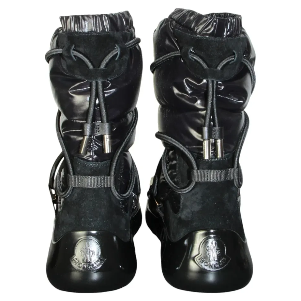 Moncler Cora Stivale Boot kombinerer Monclers luksuriøse design med praktiske, vinterklare funktioner og tilbyder en elegant mulighed til hverdagsbrug i koldt vejr. Nøglefunktioner: Sort | Godt greb på varierede overflader | Komfortabel pasform hele dagen | Slidstærk, skridsikker sål for stabilt fodfæste | Elegant minimalistisk silhuet | Alsidig styling til afslappede og raffinerede outfits | Dimensioner og pasform: Komfortabel pasform