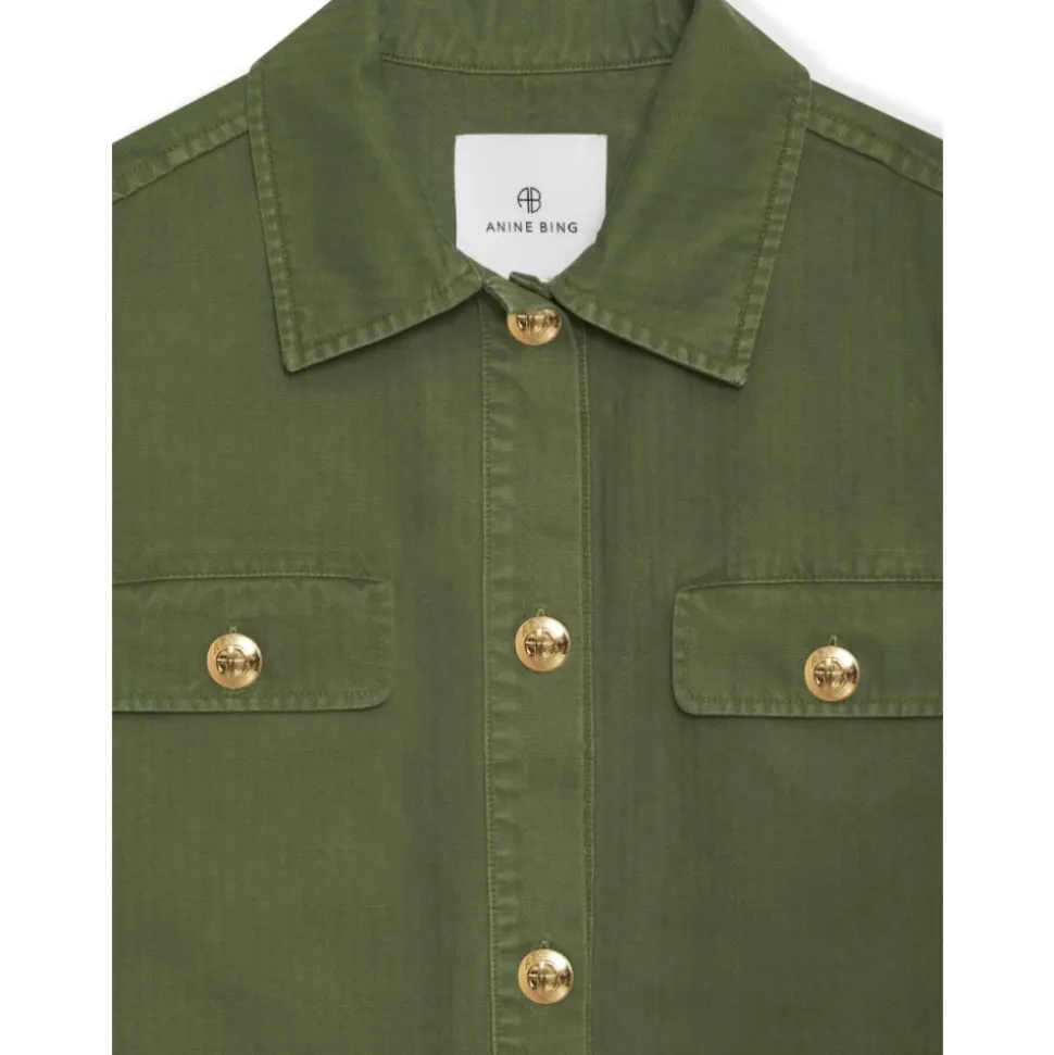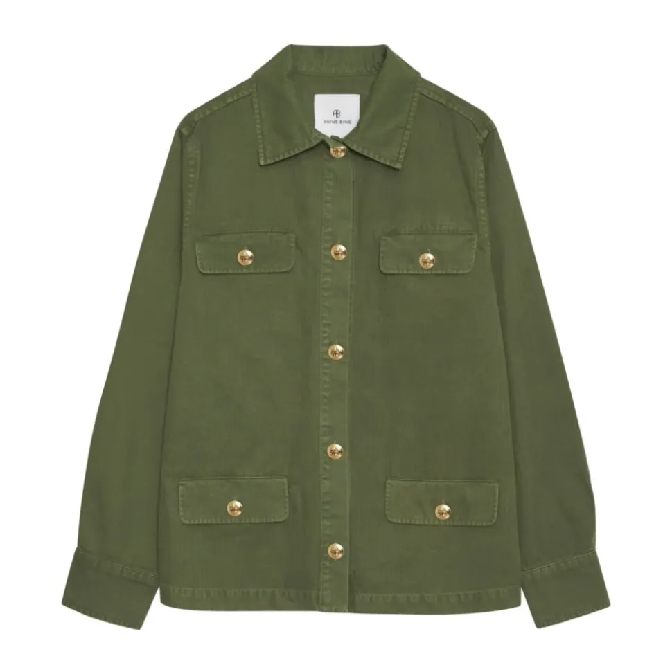 Oplev den perfekte kombination af stil og funktionalitet med Anine Bing Corey Jakken. Denne olivengrønne jakke er designet til at løfte din garderobe med sit tidløse udtryk og praktiske funktioner. Produkt detaljer: Army Grøn | Grøn | Bomuld | Lukning med knapper foran | To brystlommer | To sidelommer | Klassisk krave | Lange ærmer | Lige kant | Dimensioner og pasform: Regular pasform | Sammensætning og pleje: 100% Bomuld | Vaskes ved kold vask, tørretumbles ved lav varme