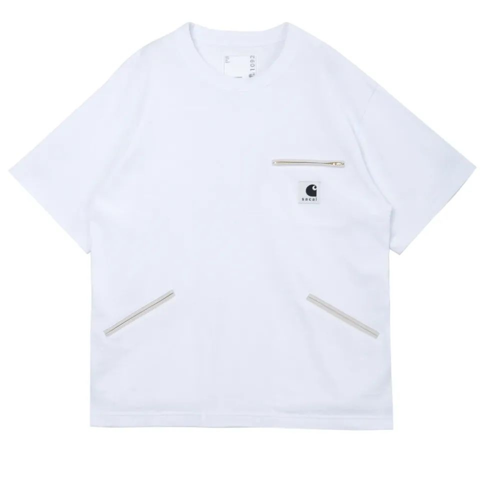 Sacai Cotton Jersey T-Shirt fra Sacai opdaterer en klassiker med en afslappet, hybrid silhuet og en ribstrikket crewneck. Det minimalistiske design og brystlommen gør den til en alsidig hverdags-tee til lagdeling eller fritidsbrug. Vigtige egenskaber: Hvid | Bomuld | Åndbart stof | Brystlomme | Trykknaplukning ved sidesømmene | Ribstrikket crewneck | Korte ærmer | Brystlomme | Nedfaldne skuldre | Mål og pasform: Afslappet pasform | Nedfaldne skuldre | Sammensætning og pleje: 100% bomuld