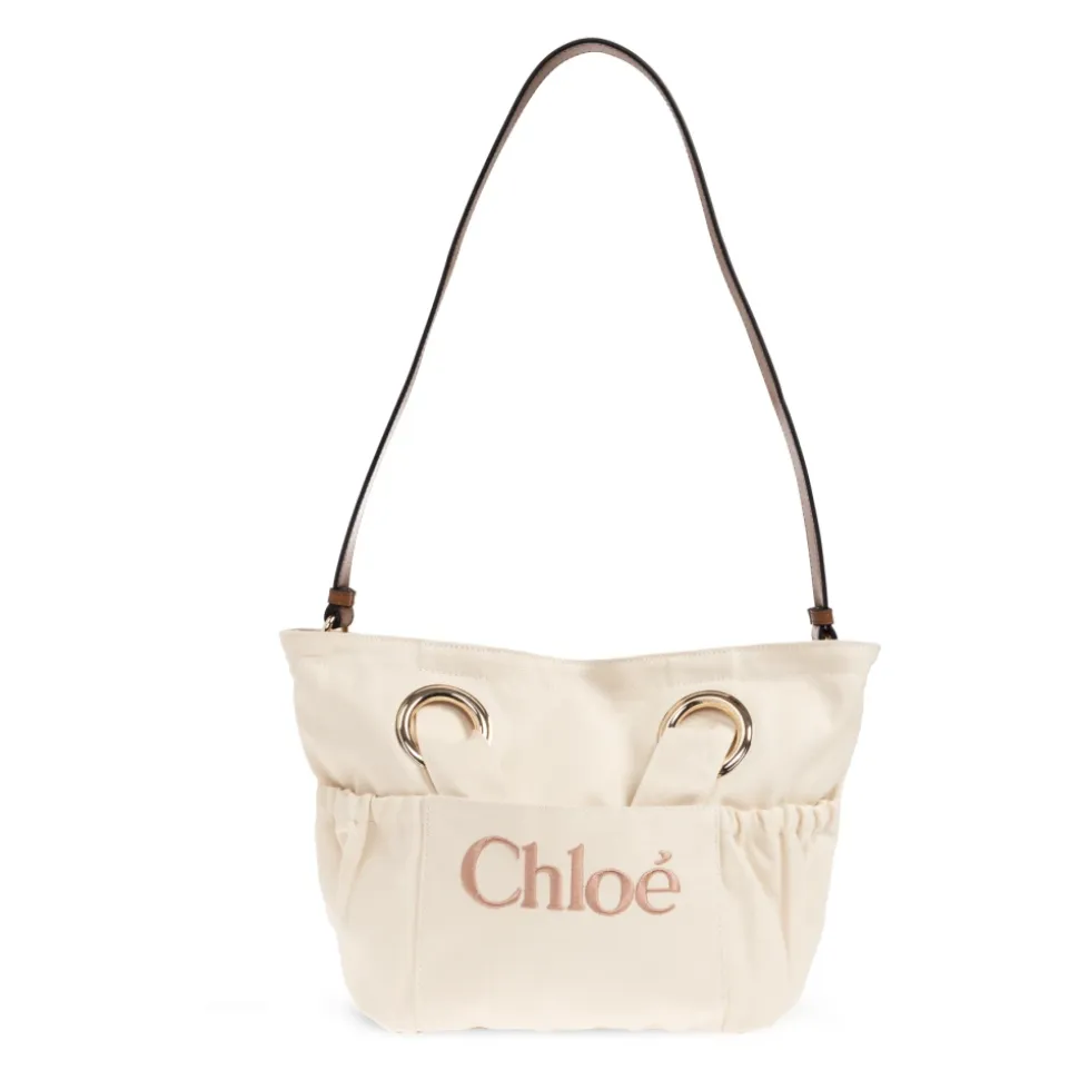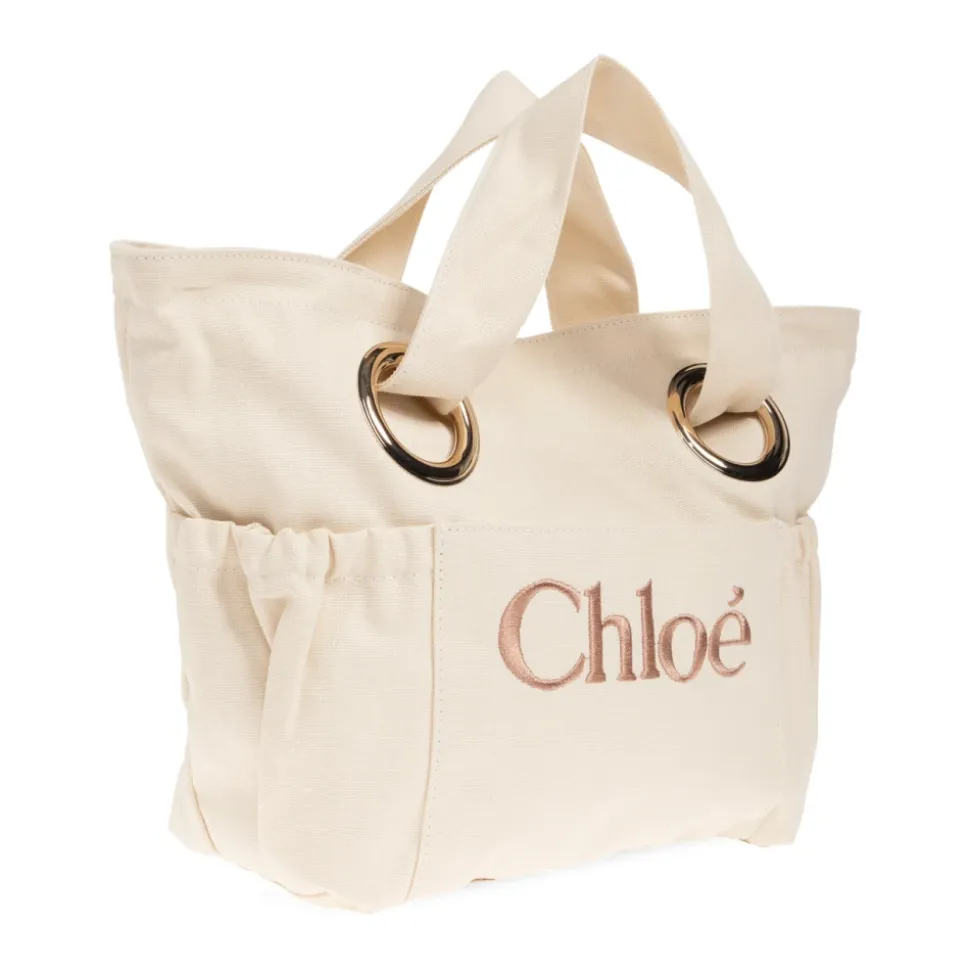 Chloé præsenterer Cotton Logo Basket Bag – en struktureret, let trapezformet tote i en cremefarvet nuance med et markant broderet logo og smykkeagtige guldøjer for en raffineret finish. Designet til hverdagsbrug kombinerer den to tophanke med en justerbar rem og praktiske sidelommer. Nøgleattributter: Beige | Creme | Bomuld | To tophanke | Justerbar skulderrem | Sidelommer til organisering | Let trapezformet silhuet | Subtil rynkning øverst | Stort broderet logo | Fremtrædende guldfarvede øjer på hanke | Mål & pasform: Højde: 25 cm | Bredde på bredeste punkt: 39 cm | Bundbredde: 11 cm | Sammensætning & pleje: 100% bomuld | Undgå gnidning mod farvekontrasterende materialer; beskyt mod fugt, lys, varme, væsker og fedtede . Følg plejeinstruktionerne på produktindlægget.