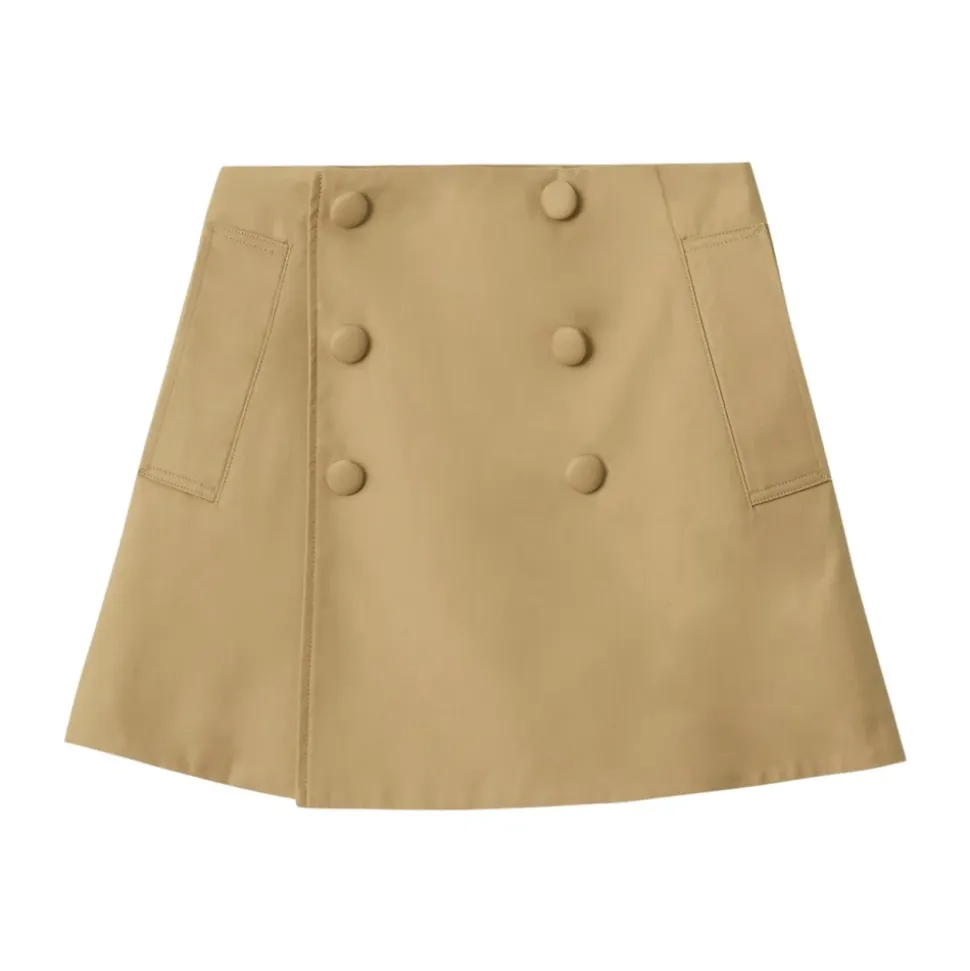 Burberry Cotton Trench Skirt opdaterer den klassiske trenchcoat til en A-linje nederdel med slå-om-effekt og signatur Burberry Check-for. Ideel til hverdagsbrug og smart-casual beklædning, den kombinerer trenchcoat-inspirerede detaljer med justerbar komfort. Vigtigste egenskaber: Beige | Sandfarvet | Bomuld | Åndbart bomuldsstof | Maskinvaskbar | Knaplukning | Sidelommer med paspolering | Indvendige justeringsmuligheder i taljen | Slids bagpå | A-linje silhuet | Slå-om-design | Stofbetrukne knapper | Burberry Check-for | Sammensætning & pleje: Yderstof: 100% bomuld | For: 100% bomuld; 100% cupro | Maskinvask. Holdes væk fra ild.