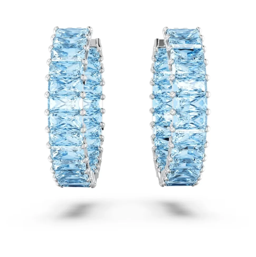 Swarovski Creole Hoop Earrings kombinerer baguette-princess-slebne krystaller med rhodinerede metaller for raffineret glans. Ideel til hverdagsbrug eller aftenlooks, de giver et sikkert hold og en poleret finish. Nøgleattributter: Sølv | Krystalblå | Rhodineret smykkemetal med Swarovski-krystaller (cubic zirconia) | Clip/skrue lukning for sikkert hold | Hoop (creole) silhuet | Baguette-Princess krystalslibning | Poleret sølvfinish | Dimensioner og pasform: Længde: 2,1 cm | Bredde: 0,5 cm | Vægt: ca. 0,5 g pr. hoop | Sammensætning og pleje: Rhodineret smykkemetal | Swarovski-krystaller (cubic zirconia) | Aftørres med en blød klud. Undgå kontakt med vand, parfume og kemikalier. Opbevares på et tørt sted.