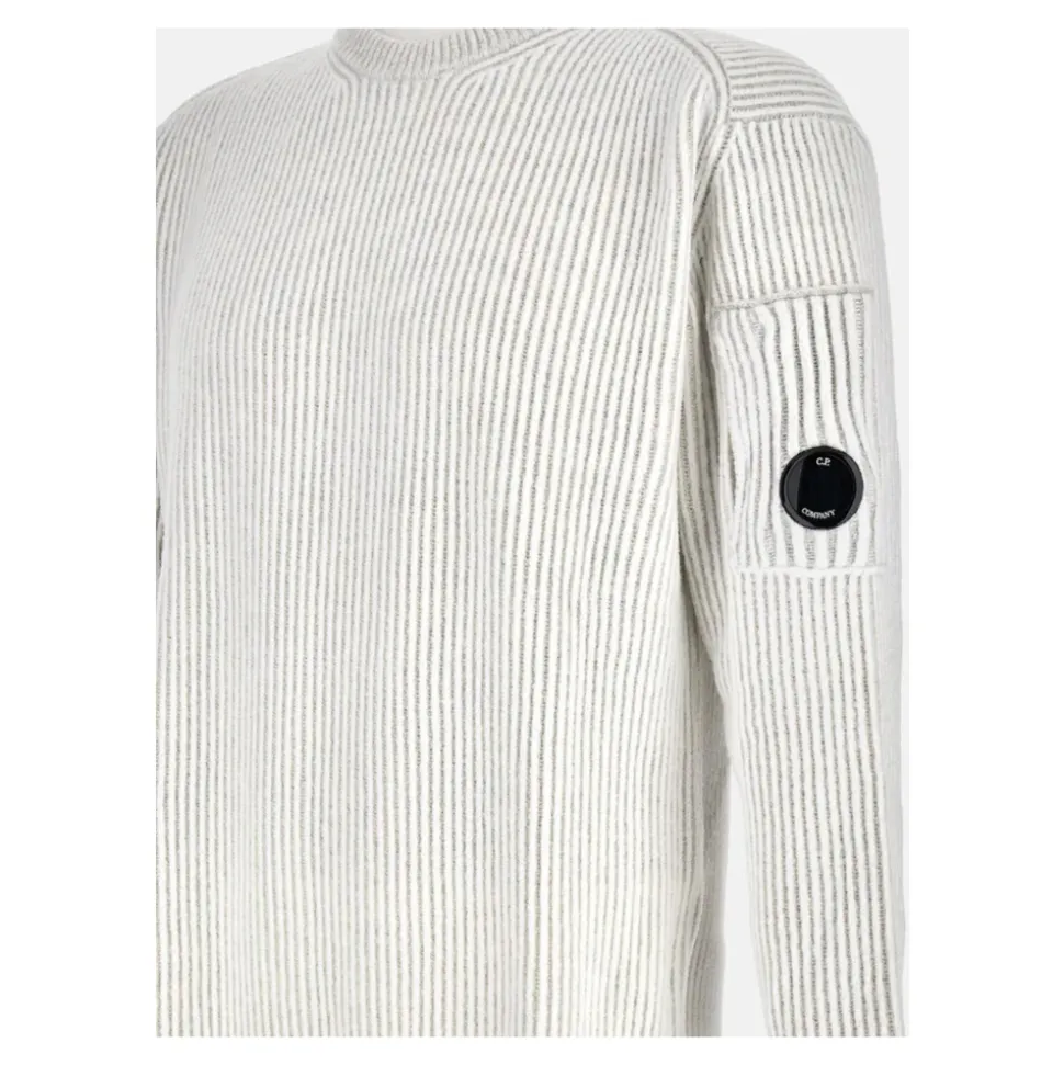 C.P. Company Crew Neck M12 er en strikket uldtrøje med rund hals, der har brandets ikoniske linse detalje og kontrasterende chenille kant. Designet til lagvis, hverdagsbrug med en tekstureret finish. Nøgleattributter: Hvid | Hvid melange | Uld | Rund halsudskæring | Kontrasterende polyester chenille | Ikonisk C.P. Company linse detalje | Finezza 7 gauge strik | Dimensioner & pasform: Regular fit | Sammensætning & pleje: Vanisé uld | Polyester chenille