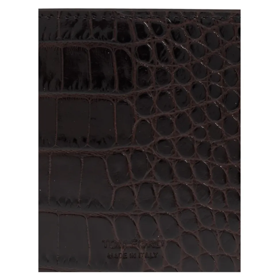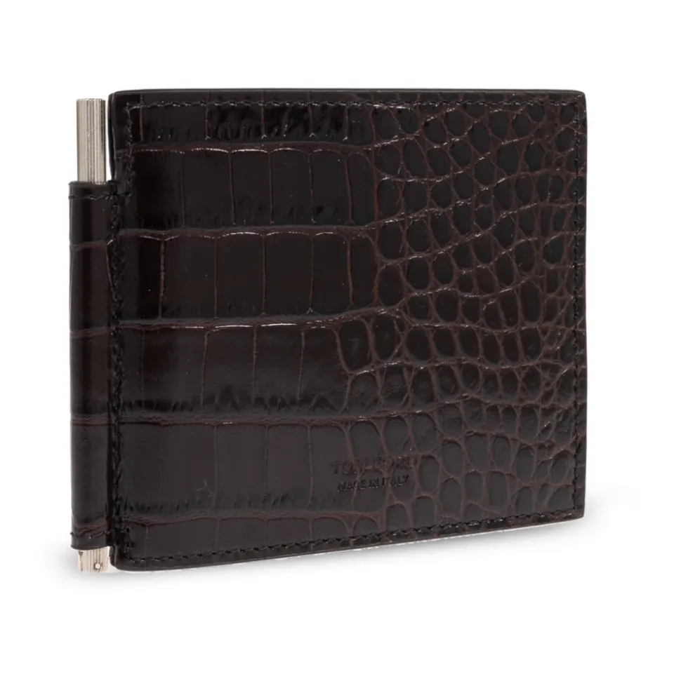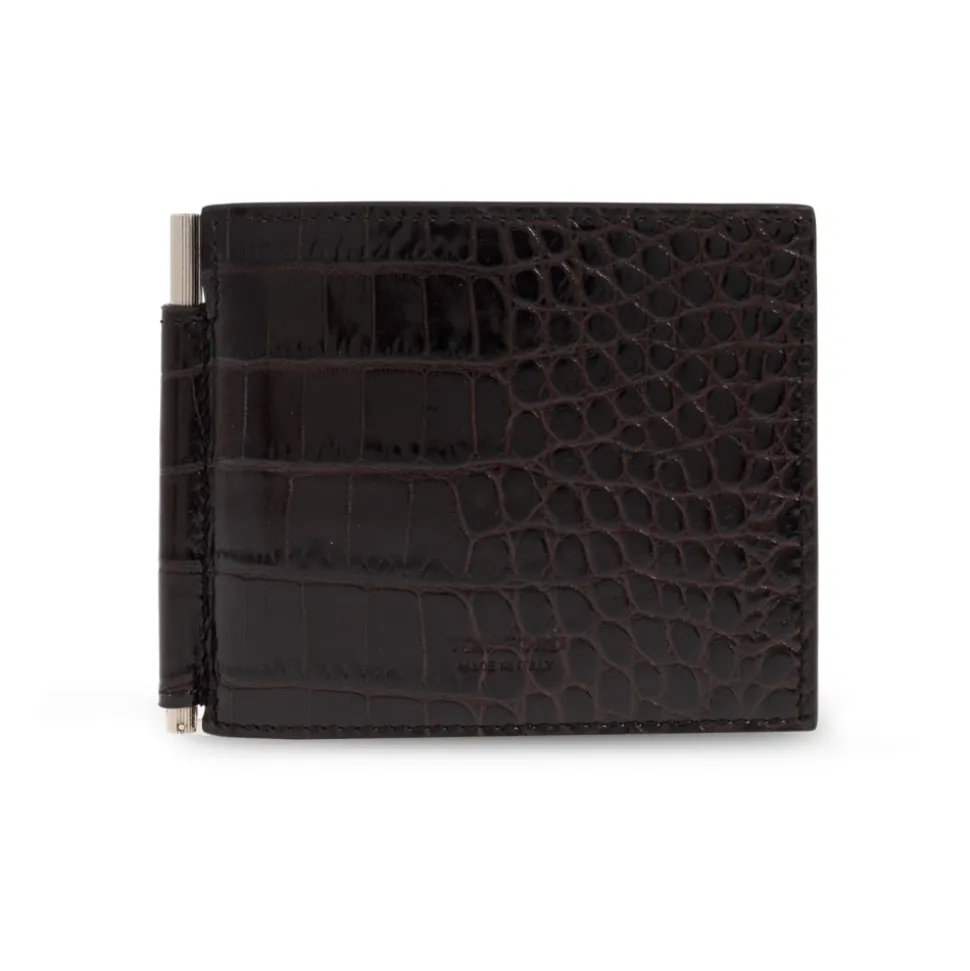 Tom Ford Crocodile Leather Wallet kombinerer en krokodille-præget, lakeret finish med en sikker pengeseddelklemme til raffineret hverdagsbrug. Det kompakte bi-fold design fremhæver præcisionssyninger og diskret brand-prægning for et poleret look. Nøgleattributter: Brun | Læder | Subtil lakeret glans | Robust pengeseddelklemme | Krokodilleprægning | Rektangulær bi-fold form | Diskret TOM FORD og MADE IN ITALY prægning | Topstitch detaljer | Lakeret finish | Dimensioner & pasform: Bredde: 11 cm | Højde: 9,5 cm | Dybde: 2,5 cm | Sammensætning & pleje: 100% kalveskindslæder (Bos Taurus)