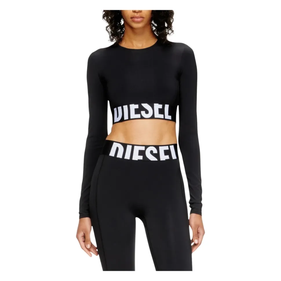 Diesel Cropped Langærmet Top kombinerer blød mikrofiberkonstruktion med en elastisk linning med logo, hvilket giver en åndbar mulighed til træning og hverdagsbrug. Nøgleattributter: Sort | Nero | Mikrofiber | Åndbart stof | Stræk | Elastisk linning med overdimensioneret logo | Rund hals | Lange ærmer | Cropped silhuet | Lige søm | Logo detalje | Dimensioner og pasform: Almindelig pasform | Sammensætning og pleje: 72% Polyamid | 28% Elastan | Maskinvask kold, skånsom cyklus. Må ikke bleges. Lægges fladt til tørre.