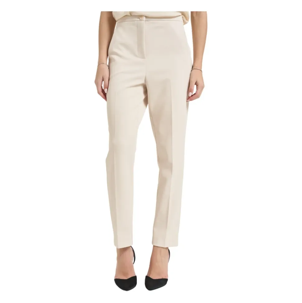 Patrizia Pepe Cropped Trousers kombinerer en slank, raffineret silhuet med et presset centralt buk for et poleret look, der er perfekt fra kontoret til aftenen. Vigtige egenskaber: Beige | Elfenben | Polyester | Strækstof | Skjult frontlynlås og knaplukning | Paspolerede baglommer | Slank silhuet | Lige, let tilspidset ben | Presset centralt buk | Ensfarvet, ingen print | Dimensioner og pasform: Modelhøjde 172 cm; iført størrelse 40 | Slim fit | Almindelig talje | Cropped længde | Sammensætning og pleje: 96% polyester, 4% elastan