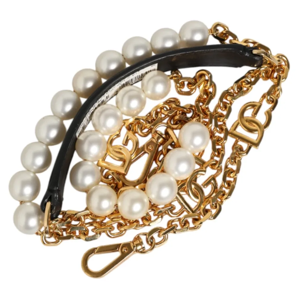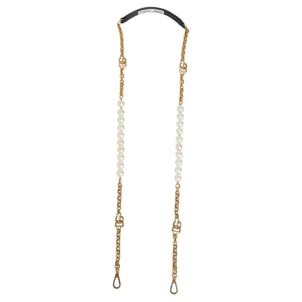 Dolce & Gabbana Crossbody-rem er en crossbody-rem i læder, der kombinerer sort kalveskind med guldfarvede kædeled og overdimensionerede perleaccenter, afsluttet med DG-logocharms. Nøgleattributter: Sort | Guld | Hvid | Kalvelæder | Crossbody-rem | Skulderrem | Guldfarvede kædeled | Overdimensionerede perleaccenter | DG-logocharms | Mål og pasform: Længde: 140 cm | Sammensætning og pleje: 40% Ægte messing, 20% Plastik, 40% Kalveskind | Indvendigt: 40% Ægte messing, 20% Plastik, 40% Kalveskind