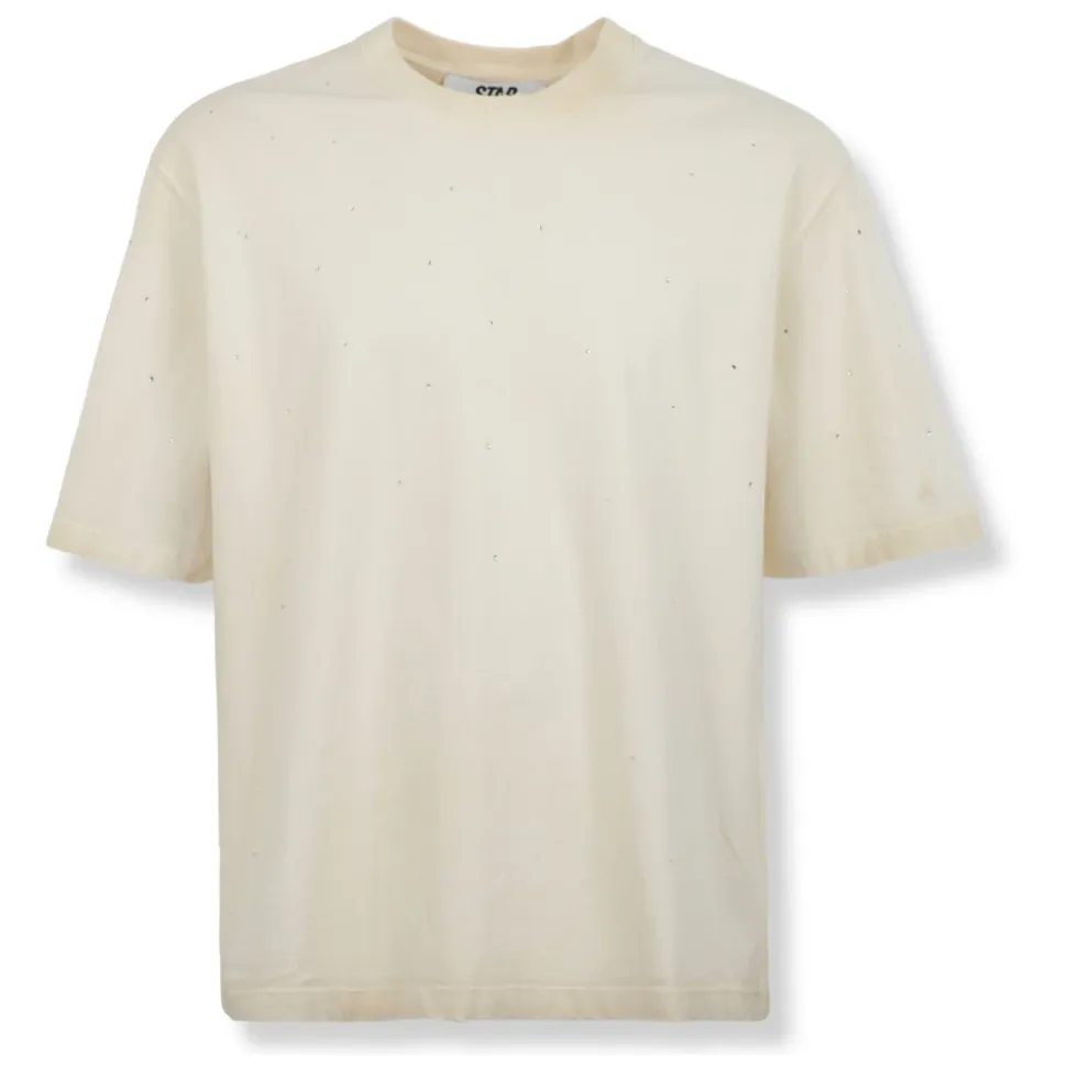 Golden Goose Crystal-Embellished T-Shirt kombinerer en afslappet silhuet med strassapplikationer og en brandet grafik på ryggen for en elegant hverdags-T-shirt. Vigtigste egenskaber: Beige | Artic wolf | Bomuld | Rund hals | Korte ærmer | Strass (rhinsten) applikationer | Logo grafik på ryggen | Dimensioner & pasform: Afslappet pasform | Sammensætning & pleje: 100% bomuld
