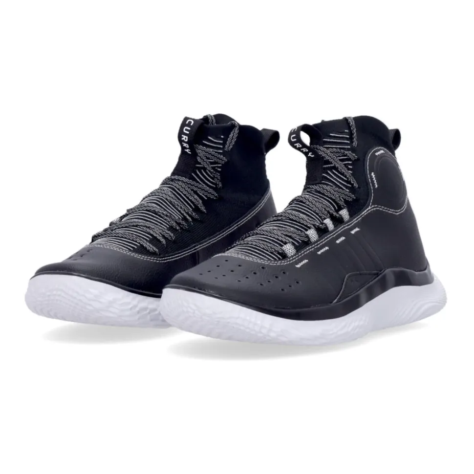 Under Armour høje basketballsko til mænd med snørelukning, der giver en stabil og behagelig pasform med mesh-foring og syntetisk mikrofiber sidepanel. Nahtlos verschmelzen Mesh-Futter und Seitenpanel mit Under Armour-Logo auf der Rückseite und Curry-Logo auf der Zunge. Ganzflächige Speed-Platte, EVA-Schaumstoff-Zwischensohle und Gummilaufsohle mit Quertraktionsmuster.