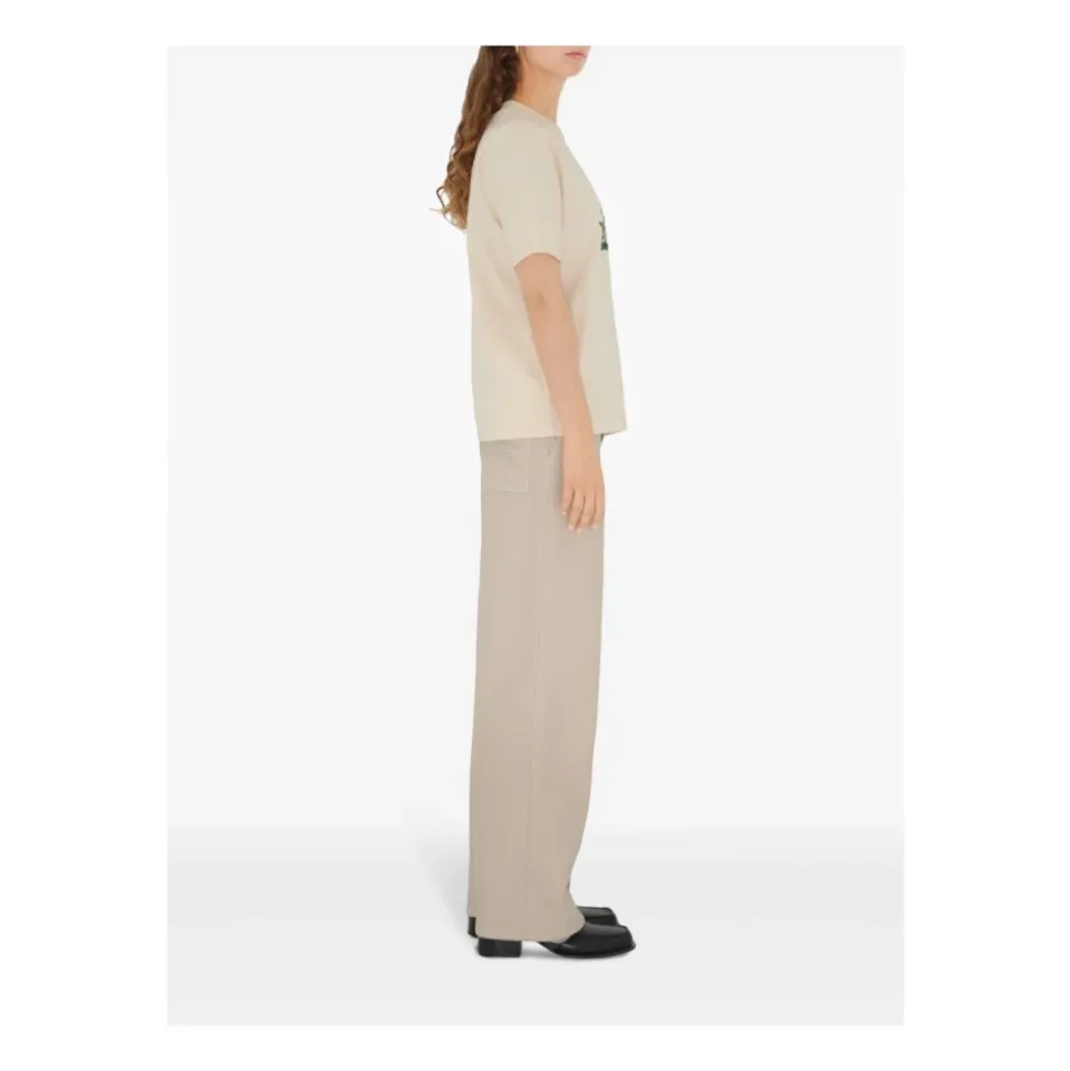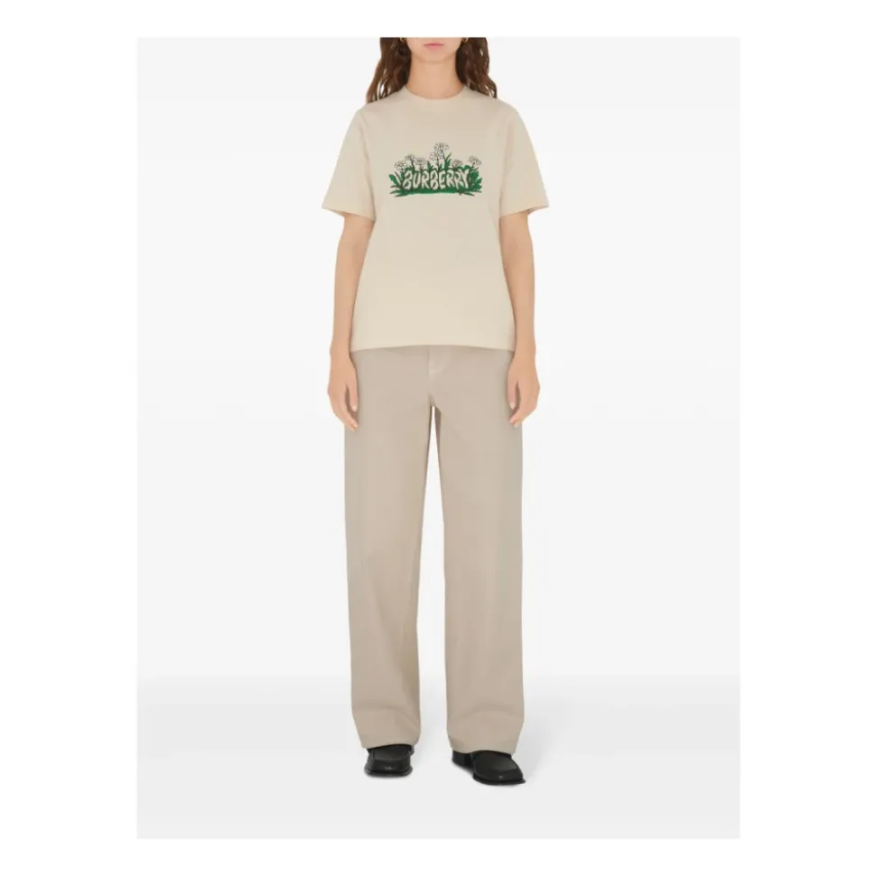 Opgrader din afslappede garderobe med Burberry Daisy Logo Print Bomulds T-shirten. Denne stilfulde beklædningsgenstand har et karakteristisk logoprint omgivet af margueritter, der tilbyder en unik blanding af klassisk og moderne design. Produkt detaljer: Beige | 100% Bomuld | Ribstrikket krave | Logo print med margueritter | Dimensioner og pasform: Regular fit | Sammensætning og pleje: 100% Bomuld | Maskinvask kold, tørretumbles ved lav varme.