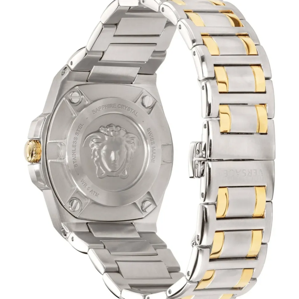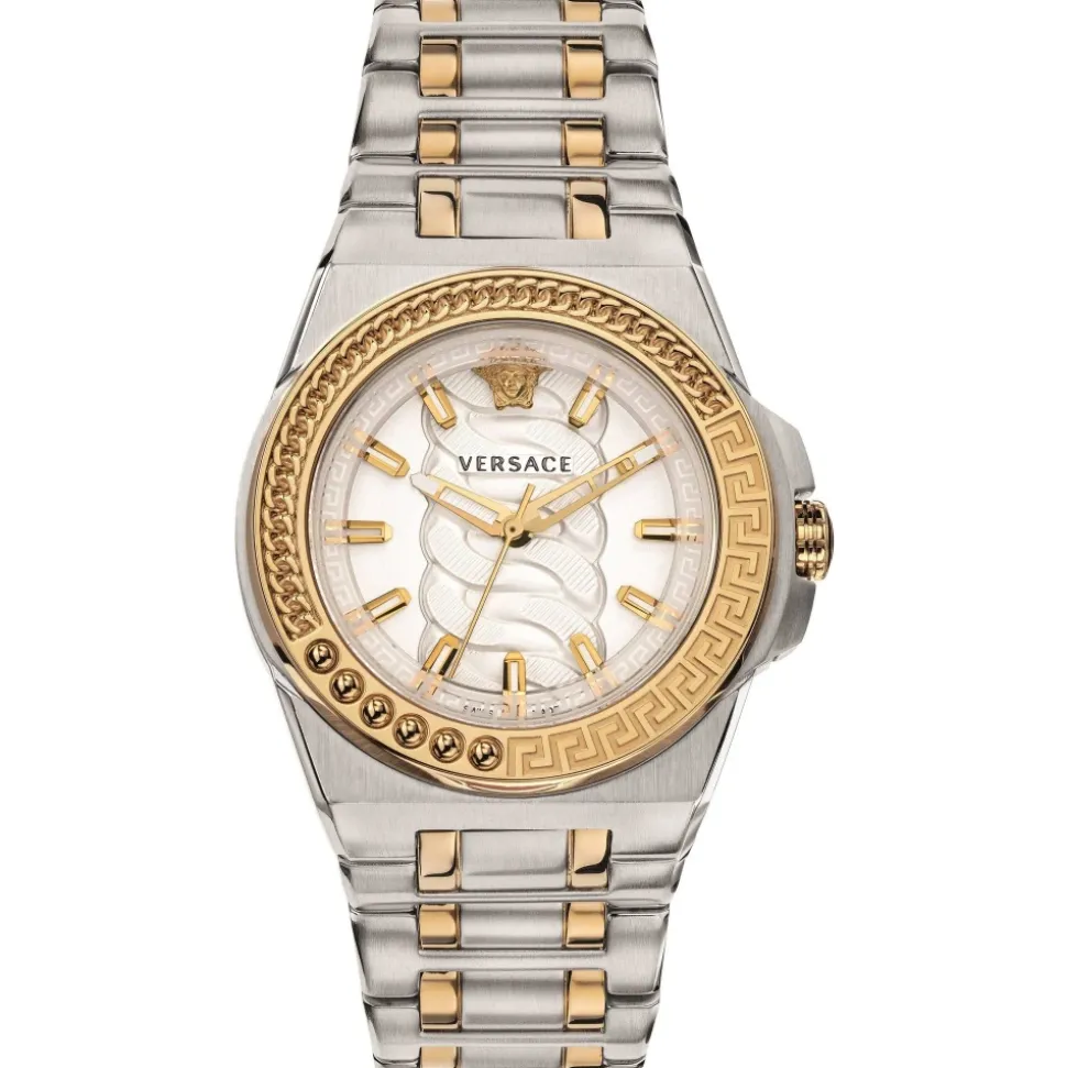 Chain Reaction er et eksklusivt ur til kvinder, der foretrækker en sporty stil og har deres eget modebevidsthed. Urets strikmønster er inspireret af de legendariske sneakers fra Chain Reaction-kollektionen. Lunetten er beriget med dekorative detaljer – med koniske og graverede elementer. Det kombinerede armbånd skiller sig ud med sit livlige design og bliver til en ægte Versace erklæring.