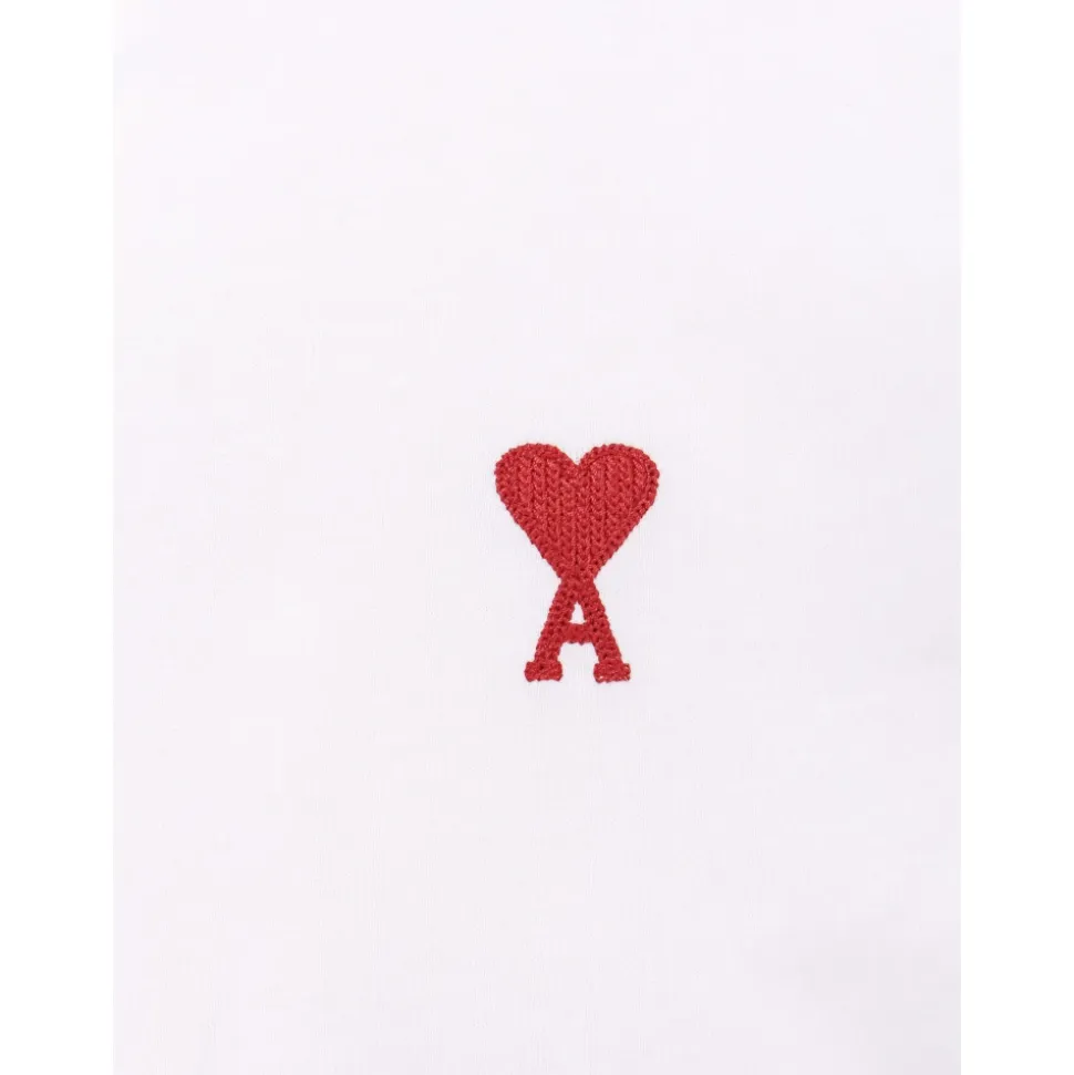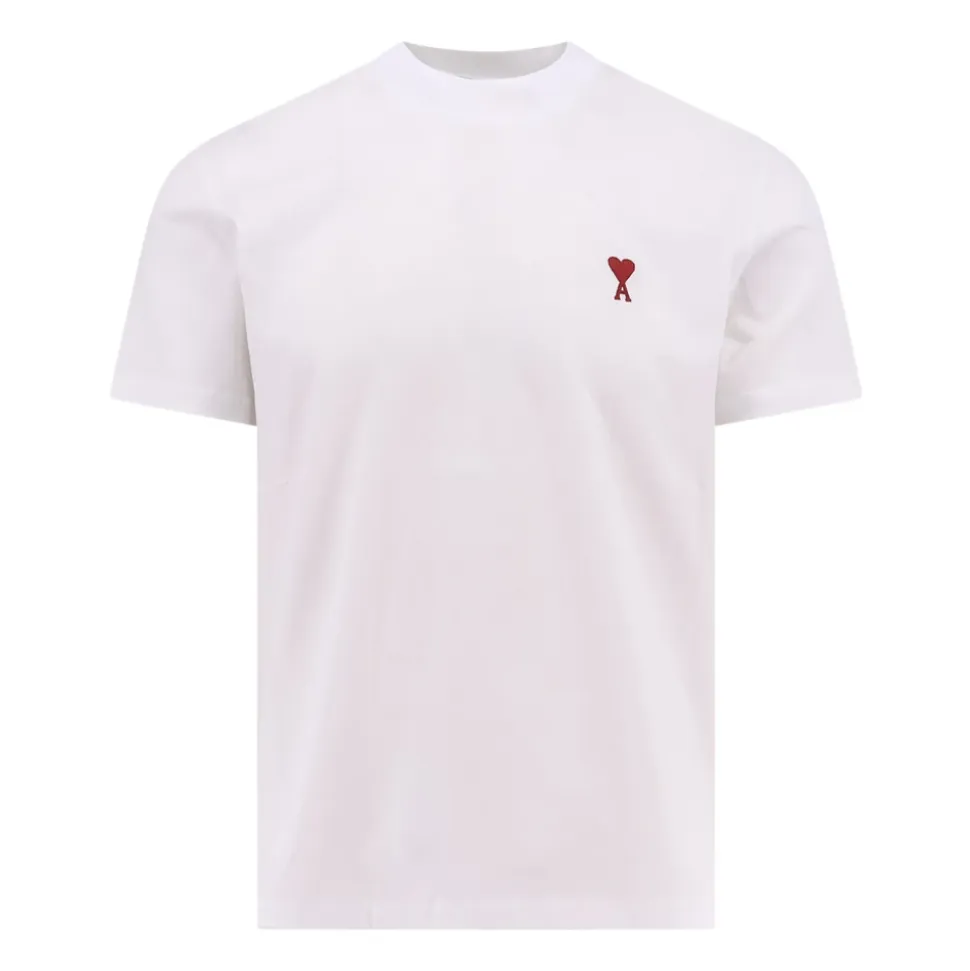 Ami Paris De Coeur T-shirten kombinerer en ribstrikket rund hals med labellets kontrasterende broderi på brystet for et rent, hverdags garderobestykke. Den er designet til komfortabel daglig brug og nem lagdeling. Vigtigste egenskaber: Hvid | Bomuld | Åndbart stof | Letvægts jersey | Lige kant | Rund hals | Ribstrikket halsudskæring | Korte ærmer | Kontrasterende broderi på brystet | Tonal broderi på ryggen | Dimensioner og pasform: Klassisk pasform | Sammensætning og pleje: 100% bomuld