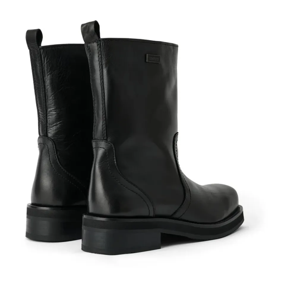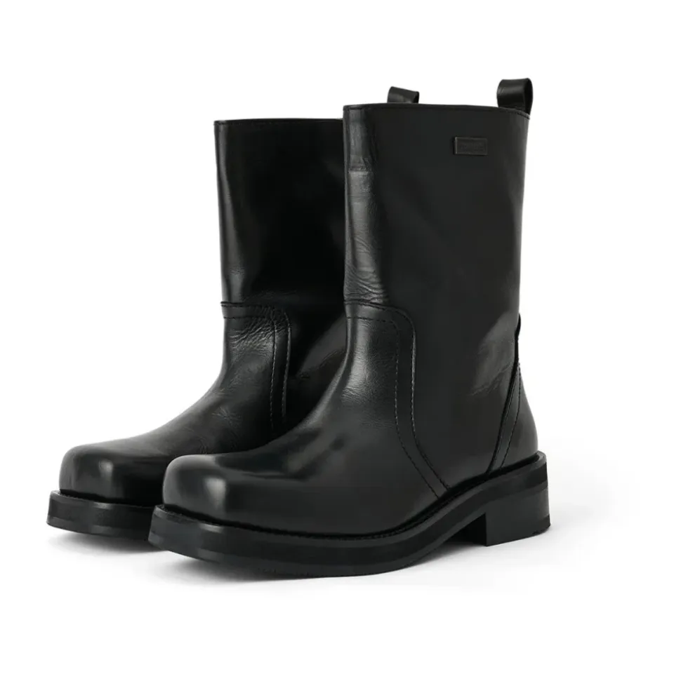 Soulland DELAWARE Boot er en mid-læg læderstøvle med en firkantet tå og chunky sål. Den er designet til struktureret hverdagsbrug med en markant statement-silhuet. Nøgleattributter: Sort | Læder | Mid-læg højde | Firkantet tå | Chunky sål | Glat lædertekstur | Metal logo plade på siderne | Dimensioner & pasform: Passer normal i størrelsen | Sammensætning & pleje: Overdel: 100% læder | Foring: 100% læder | Sål: 100% gummi