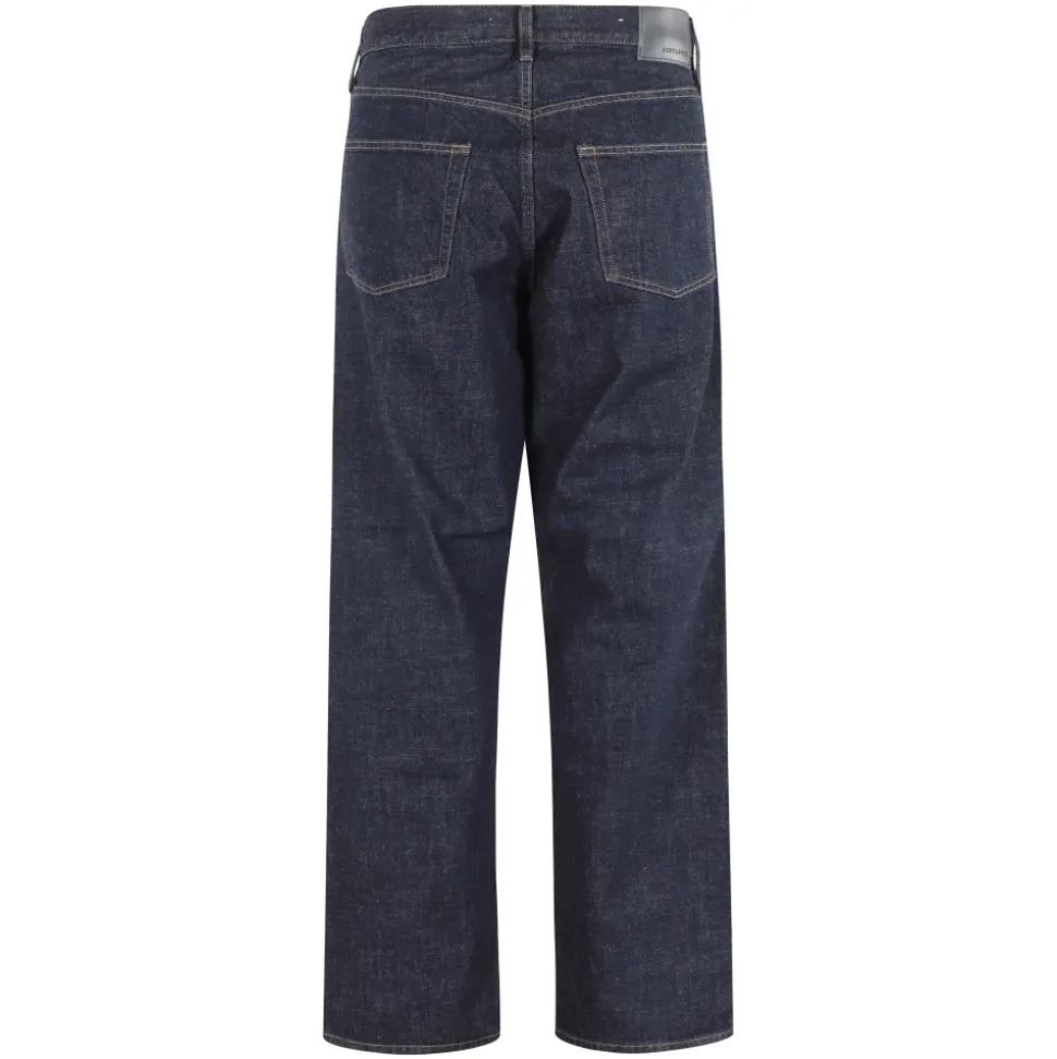 Sunflower Loose Fit Denim Blue Straight Jeans til mænd med 5 lommer, bredt ben, taljebånd og dobbelt knap- og lynlåslukning.