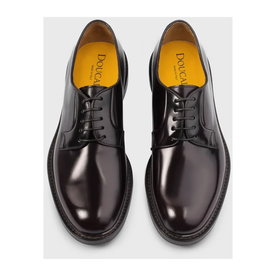 Doucal`s Derby snøresko i bordeaux læder har en sømløs overdel og afrundede former, perfekt til alsidige lejligheder. Disse sko er fremstillet med Blake konstruktion og lover holdbarhed og komfort. Produkt detaljer: Vinrød | Rød | Læder | Fem-hullers snørelukning | Sømløs overdel | Afrundede former | Dimensioner og pasform: Almindelig pasform | Sammensætning og pleje: Læder