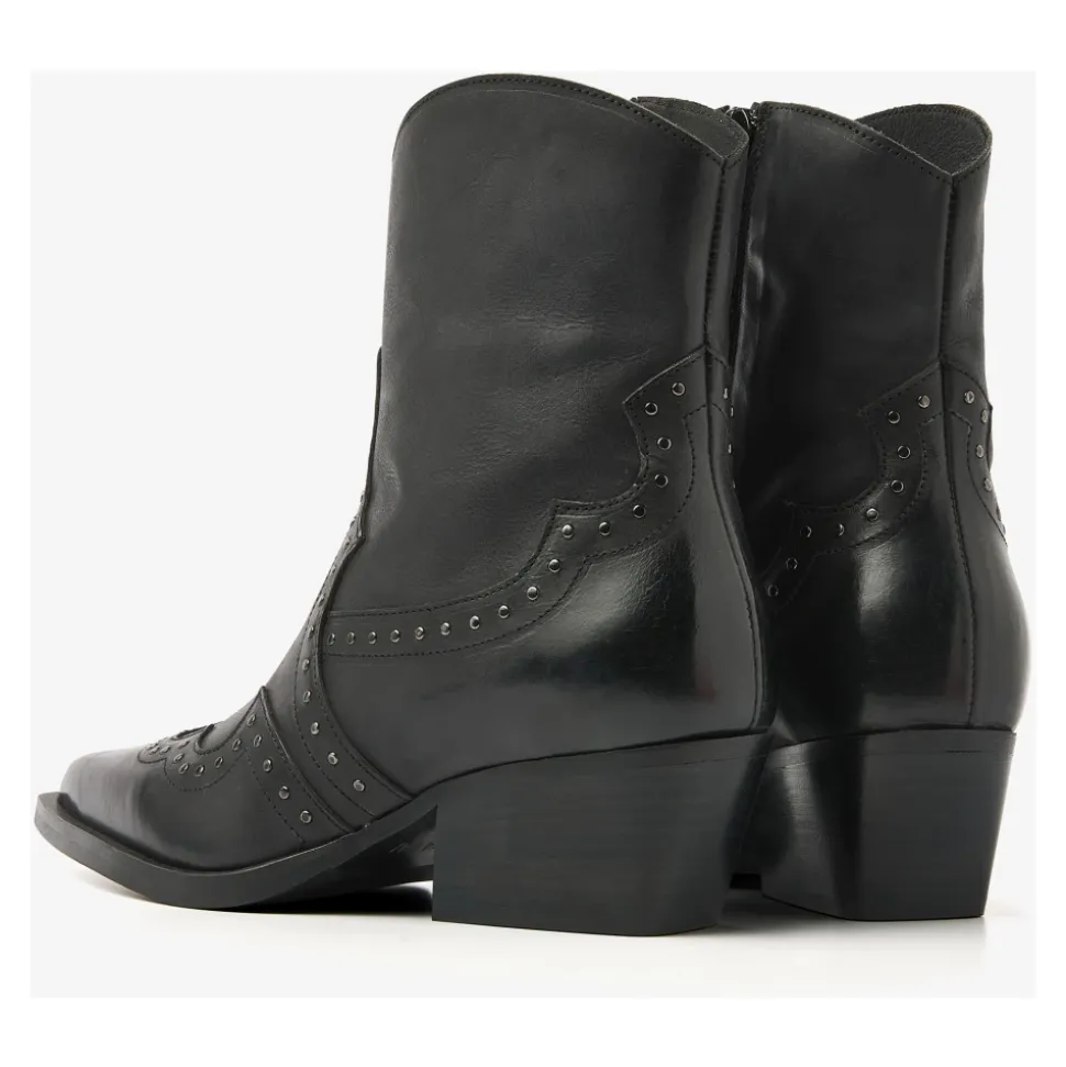NøglefunktionerLige tåSkrånende blokhælDekorative nitterFunktionel lynlås i sidenLæderforingLavet af læder af høj kvalitetHåndlavet i PortugalDo Felix sorte ankelstøvlerMød Do Felix! Den perfekte ankelstøvle til alle, der elsker stil med et strejf af kant. Do Felix er lavet af læder af høj kvalitet, der giver et luksuriøst look. Støvlerne har en lige tå og en skrånende blokhæl, der skaber et western-look. De dekorative sølvnitter på støvlen skaber et edgy og stilfuldt look. Do Felix har det hele.Sådan styler du Do Felix ankelstøvlerDisse sorte ankelstøvler kan styles på uendelige måder. Foretrækker du et afslappet look? Style ankelstøvlerne med et par jeans og en vest. For et mere klassisk look og en feminin stemning, vælg en lang nederdel med en fin bluse. Kjole. Shine. Go.