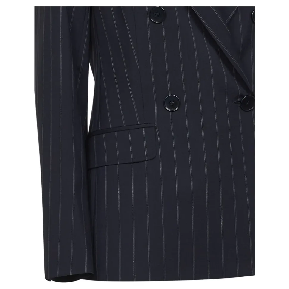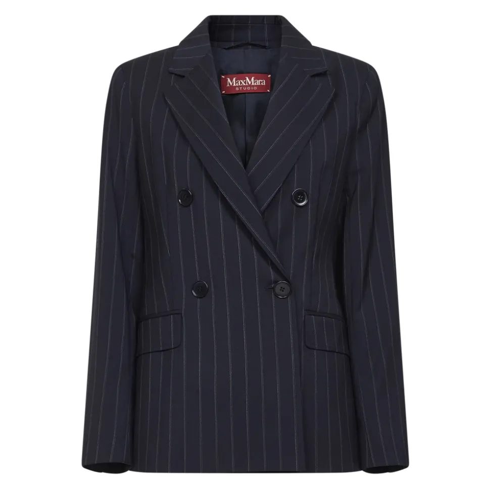 Max Mara Studios dobbeltknappede nålestribede uld blazer kombinerer en skræddersyet, let figursyet silhuet med klassiske jakkesætsdetaljer. Ideel til poleret arbejdstøj og smarte lagdelte outfits. Nøgleattributter: Blå | Jomfruuld | Paspolerede taljelommer med klap | Central slids bagpå | Fuldt foret | Fire-knaps frontlukning | Dobbeltknappet fire-knaps stolpelukning | Reverskrave | Lange isatte ærmer med fire-knaps manchetter | Fuldt udsmykket med skræddersyede syninger | Nålestribet mønster | Dimensioner og pasform: Let figursyet | Sammensætning og pleje: 100% Jomfruuld | Foring: 70% Acetat, 30% Polyester | Må kun renses. Må ikke vaskes, bleges eller tørretumbles. Stryges ved lav varme; professionel rens (perchlorætylen, mild proces); må ikke vådrenses. Stryg med en klud imellem.