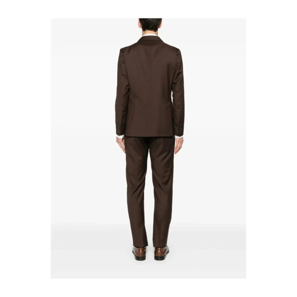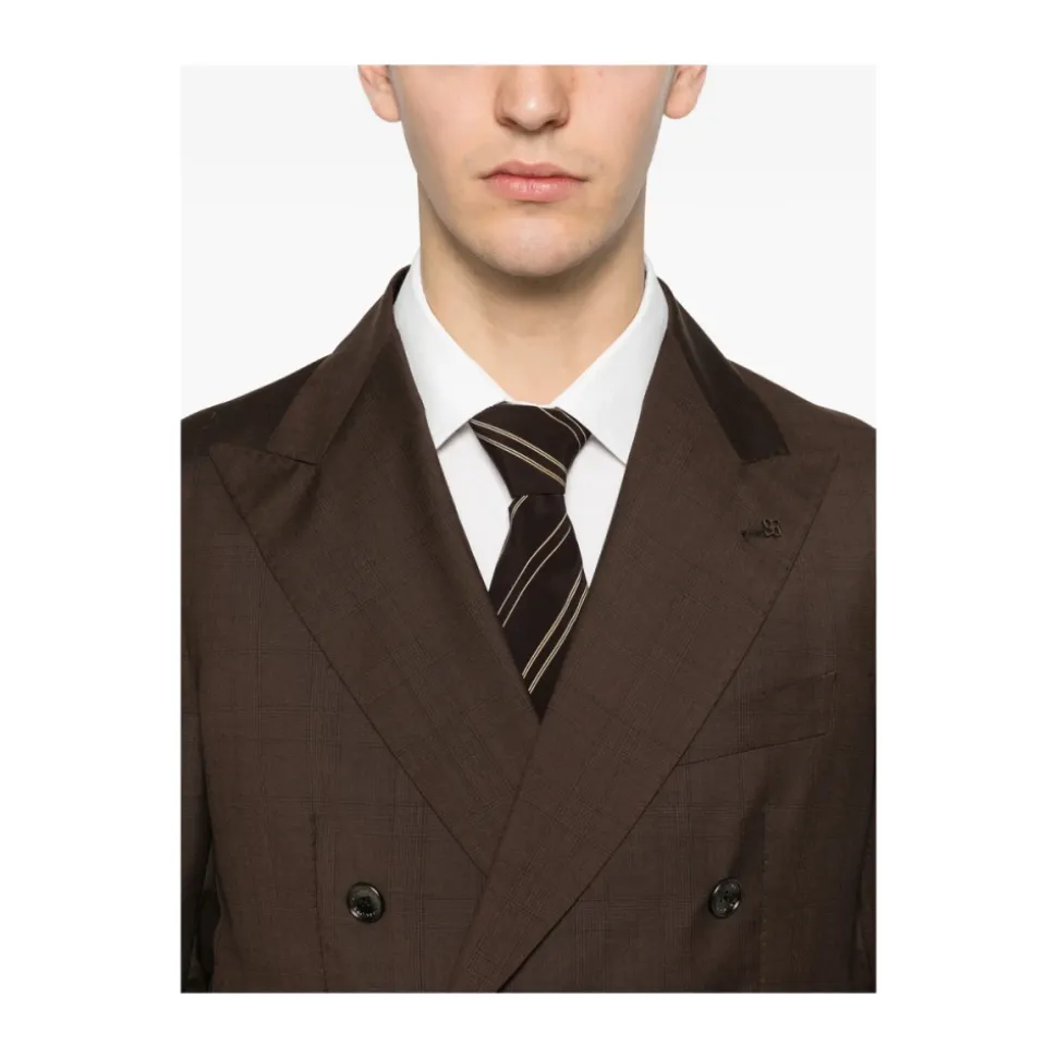 Tagliatore dobbeltradet ulddragt kombinerer raffineret skrædderkunst med et klassisk ternet mønster. Dragten er designet til formelle og smarte-casual lejligheder og har en dobbeltradet jakke med hakkede revers og praktiske klaplommer. Vigtigste egenskaber: Brun | Jomfruuld | Knaplukning | Klaplommer | Foret | Ternet mønster | Dobbeltradet | Hakkede revers | Dimensioner og pasform: Slim fit | Sammensætning og pleje: 100% jomfruuld (jakke og bukser) | Jakke foring: 100% Cupro | Bukseforing: 100% Bomuld