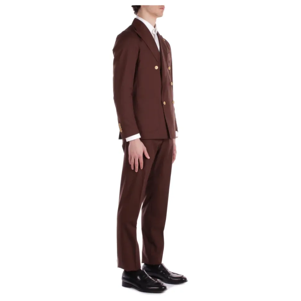 Oplev elegancen i Tagliatore Double-Breasted Suit, fremstillet af luksuriøs jomfruuld for et sofistikeret look. Ideel til formelle lejligheder, kombinerer dette jakkesæt stil med komfort. Produkt detaljer: Brun | Jomfruuld | Bukser med lynlås og hægte | To side- og baglommer | Double-breasted jakke med knapper | To sidelommer på jakken | Dimensioner og pasform: Slim fit | Sammensætning og pleje: 100% jomfruuld | For: 100% cupro | Buksefor: 100% bomuld | Renseri anbefales