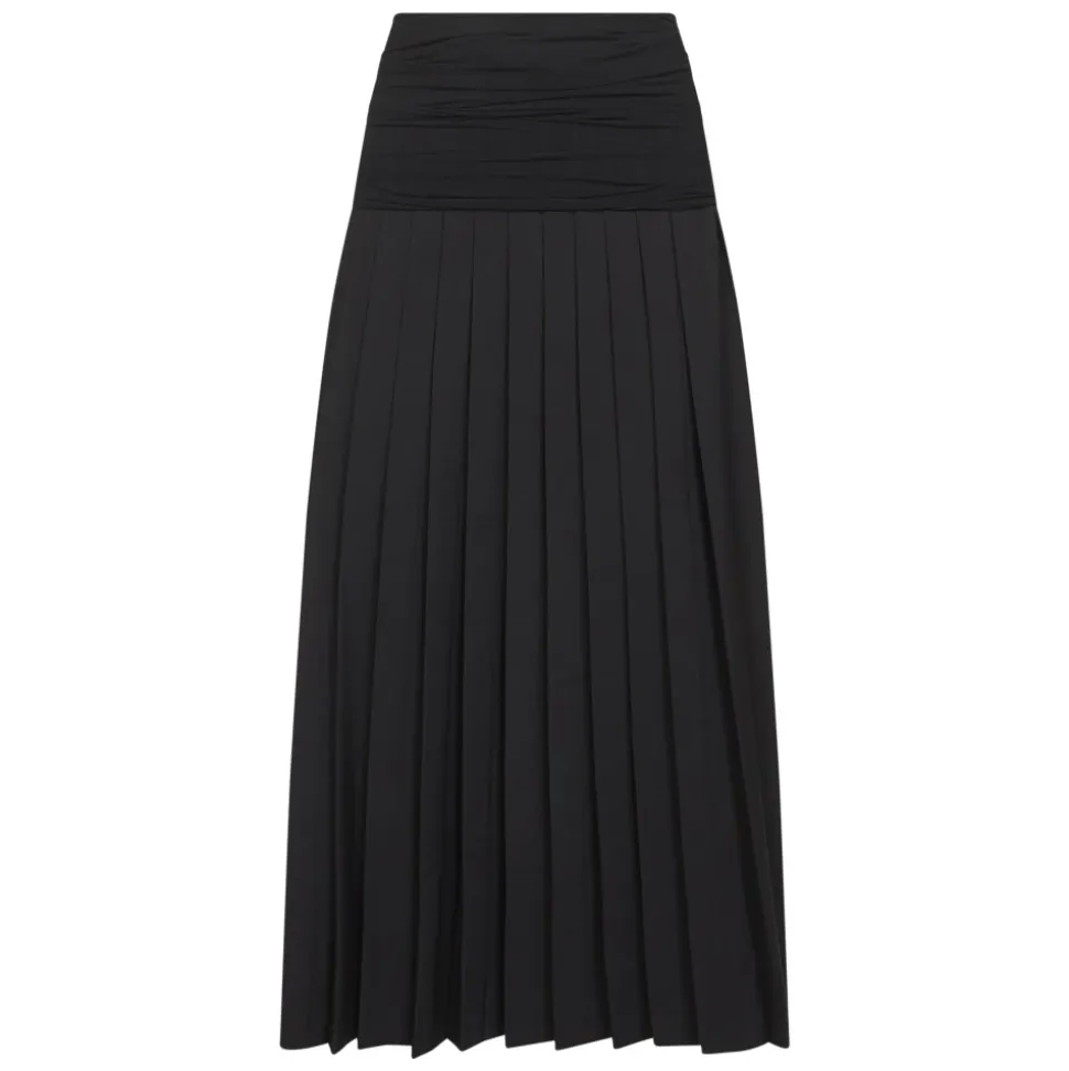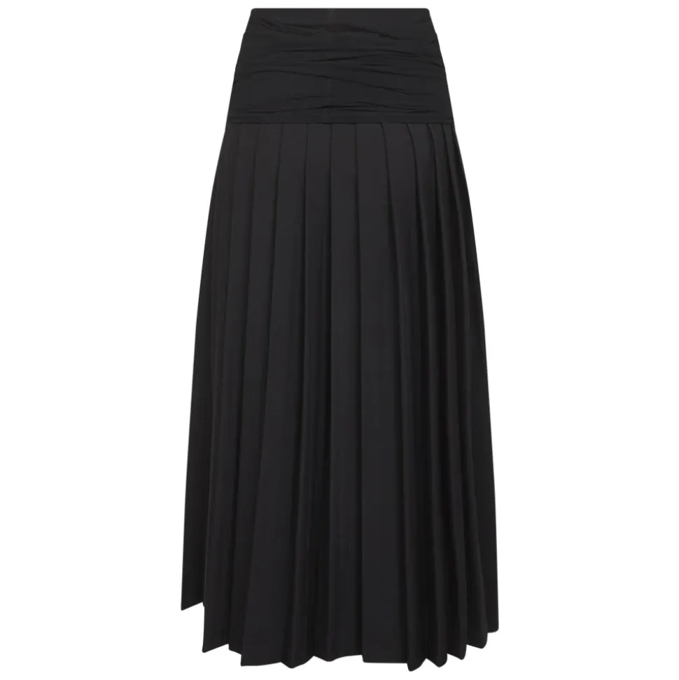 MM6 Maison Margiela Double-Layer Midi Skirt kombinerer en høj talje med en plisseret silhuet og et bredt tone-i-tone tyl-rynket panel for skulpturel volumen og bevægelse. Vigtige egenskaber: Sort | Off black | Polyester | Lynlåslukning i siden | Bredt tone-i-tone tyl-rynket panel i taljen | Hvid stikningslinje bagpå | Plisseret silhuet | Dimensioner og pasform: Ankel længde | Høj talje | Sammensætning og pleje: 55% Polyester | 45% Jomfruuld