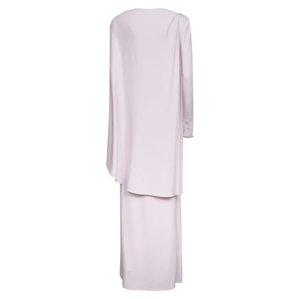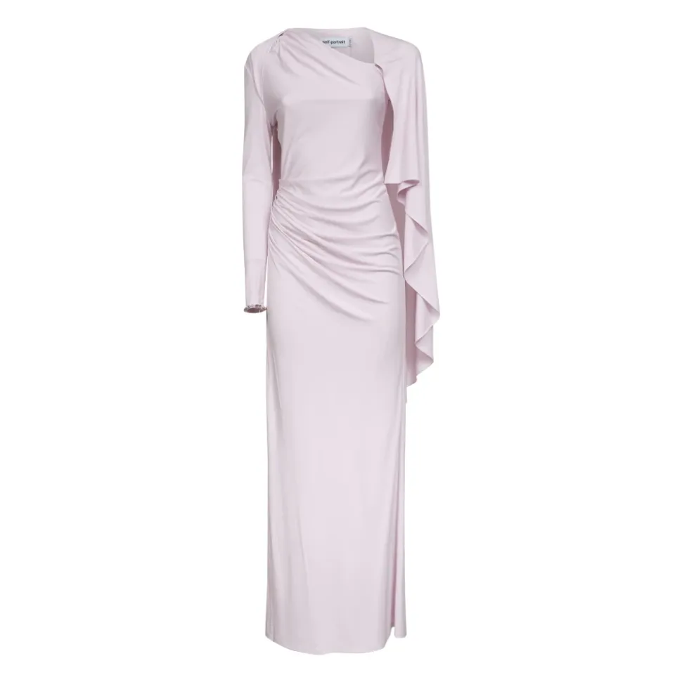 Self Portrait Draperet Maxikjole fremviser en asymmetrisk rynket halsudskæring og en dramatisk draperet kappe for elegant aftenbeklædning. Stretch-jersey silhuetten afsluttes i en let udvidet havfruekant for raffineret bevægelse. Nøgleattributter: Pink | Polyester | Side usynlig lynlåslukning | Asymmetrisk rynket halsudskæring | Lange ærmer | Asymmetrisk draperet kappedetalje | Rynkede detaljer ved højre hofte | Draperede detaljer foran i taljen | Let udvidet havfruekant | Dimensioner og pasform: Almindelig pasform | Sammensætning og pleje: 95% Polyester, 5% Elastan