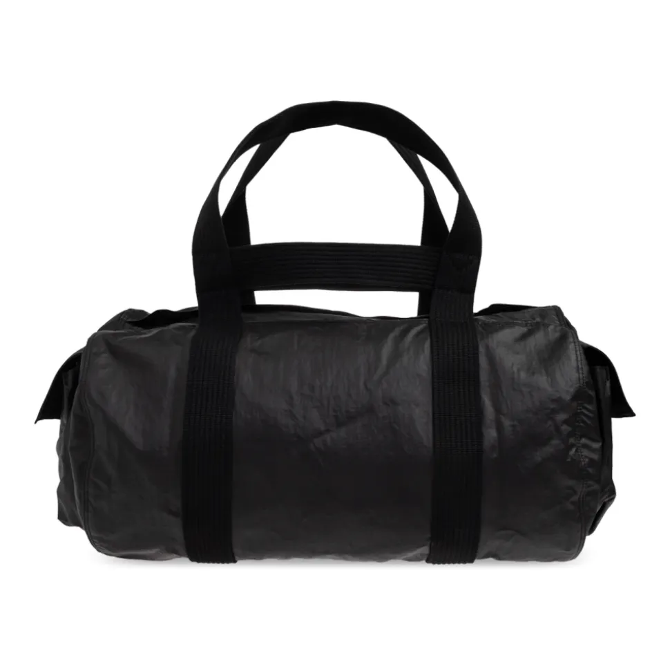 Y-3 Duffle Bag fra Y-3 kombinerer minimalistisk, cylindrisk design med slidstærk, teknisk nylon til weekendrejser og brug i fitnesscentret. Den sorte, strukturerede silhuet og praktiske lommer gør den til en alsidig taske til hverdagsbrug og korte ture. Vigtige egenskaber: Sort | Nylon | Vandafvisende | Krøllefast yderlag | Polstret struktur for formfastholdelse | To brede stropper til hånd- eller skulderbæring | Hovedrum med lynlåslukning | Sidelommer med klap og magnetlukning | Indvendig lynlåslomme og netlommer | Cylindrisk silhuet | Minimalistisk, avantgarde-æstetik | Asymmetrisk lommeindretning | Subtilt Y-3 logo | Mål og pasform: Højde: 31 cm | Bredde (bredeste punkt): 53,5 cm | Bundbredde: 14,5 cm | One size | Sammensætning og pleje: Nylon 100%