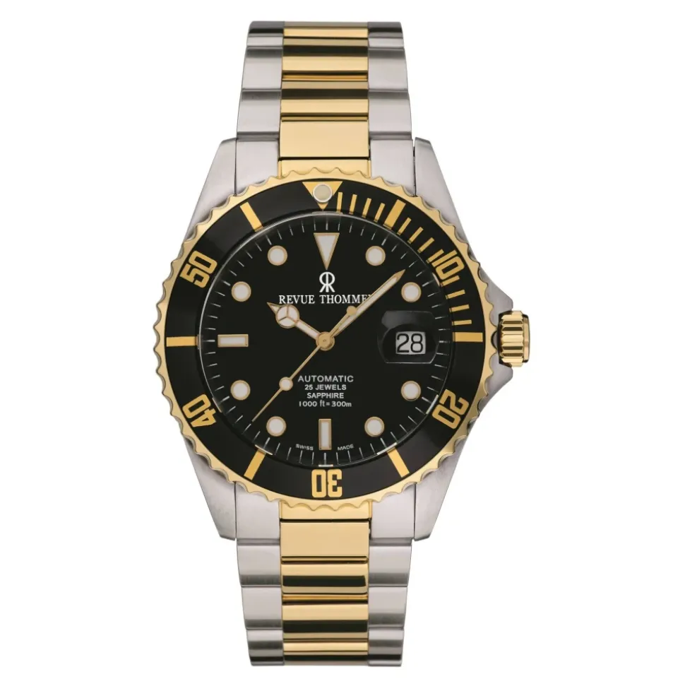 Revue Thommen Dykkeruret kombinerer et Selitta SW-200 automatisk urværk med en urkasse i rustfrit stål og 30 bars vandtæthed, bygget til pålidelig ydeevne under vand og til hverdagsbrug. Vigtigste egenskaber: Grå | Sølv | Guld | Sort | Rustfrit stål | 30 bars vandtæthed | Automatisk Selitta SW-200 urværk | Safirkrystal | Datovisning | Drejelig urkrans | Foldelukning med sikkerhed | Rund urkasse | Sort urskive | To-farvet armbånd | Dimensioner og pasform: Urkassediameter 42 Millimeter | Urkassehøjde 13 Millimeter | Båndbredde 22 Millimeter | Vægt 200 Gramm | Sammensætning og pleje: Rustfrit stål | Safirkrystal