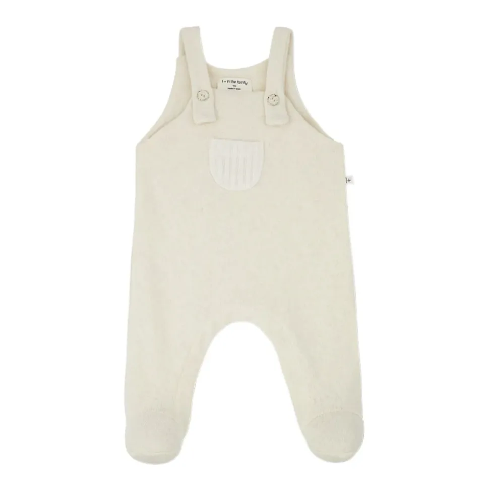 1 + IN THE FAMILY Domenec selerbukser i varm ecru bomuld, med fødder, seler, lomme i mavehøjde og træknapper, ideel til børn jumpsuits.