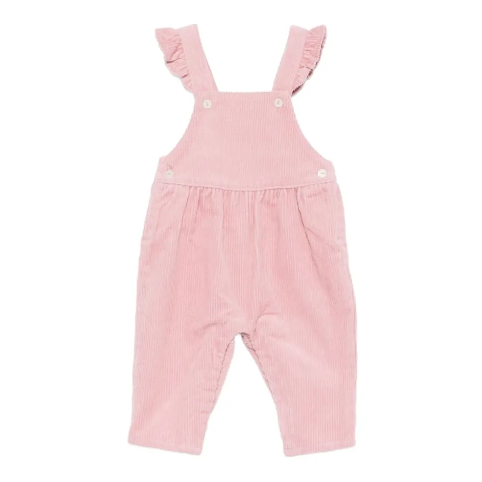 Tartine et Chocolat Eglantine Jumpsuit kombinerer blød bomuldsfløjl med flæsekanter på skulderstropperne og knaplukninger for et raffineret hverdagslook. Nøgleattributter: Pink | Bomuldsfløjl | Flæsekanter på skulderstropperne | Knaplukninger | Rynkedetalje | Smækbukse-silhuet | Flæsekant | Fløjlsstruktur | Rynkede detaljer | Sammensætning & pleje: Bomuld