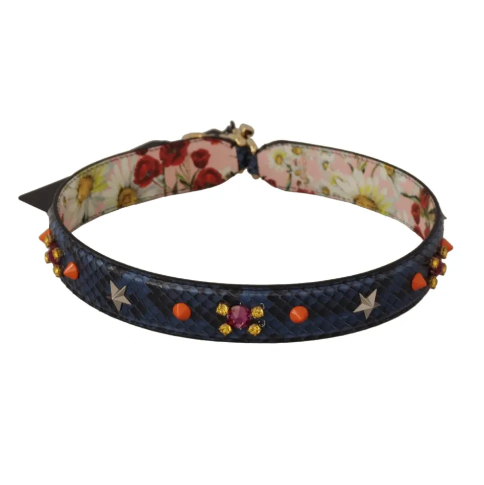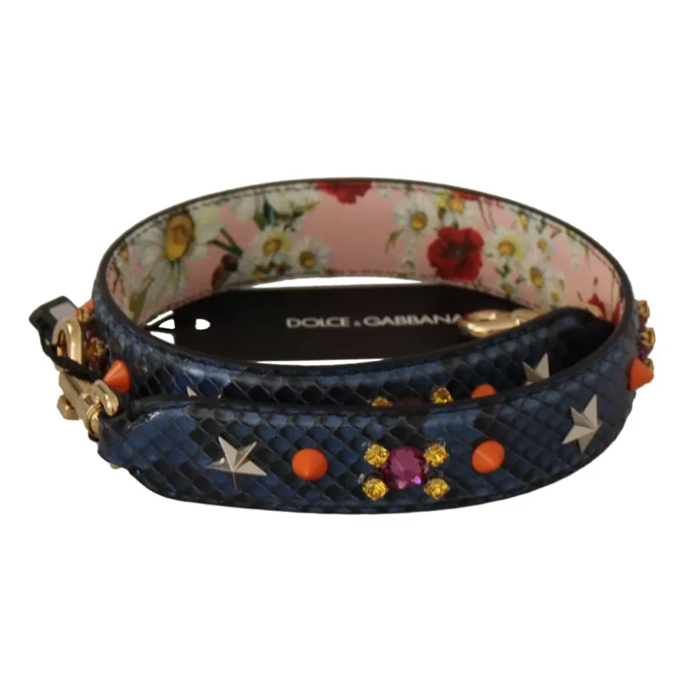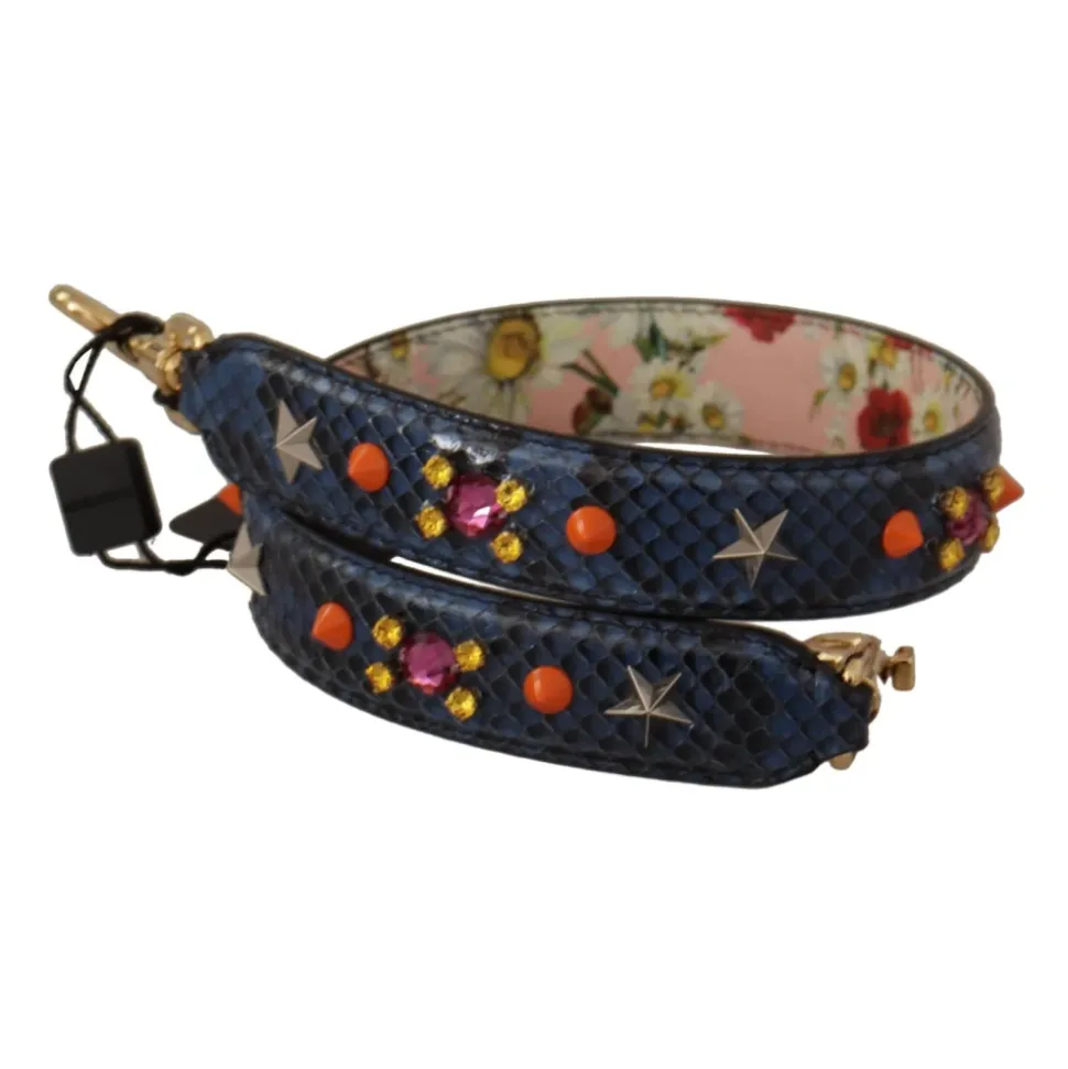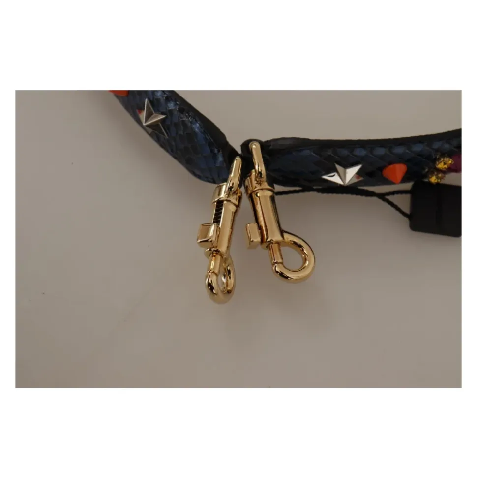 Forøg din håndtaskesamling med denne fantastiske og autentiske Dolce Gabbana skulderrem. Fremstillet af førsteklasses blåt læder, har denne rem to guldtonede klo-låse, der gør det nemt at fastgøre den til dine foretrukne tasker. Lavet i Italien med enestående håndværk er denne skulderrem designet specielt til kvinder. Dens elegante design og høj kvalitet python læder tilføjer et strejf af luksus til ethvert outfit. Mål: 70 cm x 3 cm.