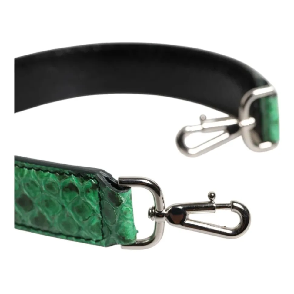 Opgrader din taskes stil med denne luksuriøse Dolce & Gabbana skulderrem, fremstillet af førsteklasses 100% pythonlæder i en markant sort og grøn farvekombination. Denne accessory er fremstillet i Italien og tilføjer et strejf af elegance til enhver taske. Produkt detaljer: Sort | Grøn | Pythonlæder | Justerbar længde | Sølvfarvede metaldetaljer | Dimensioner og pasform: 44,5 cm længde | 3 cm bredde | Sammensætning og pleje: 100% pythonlæder | Specialrensning