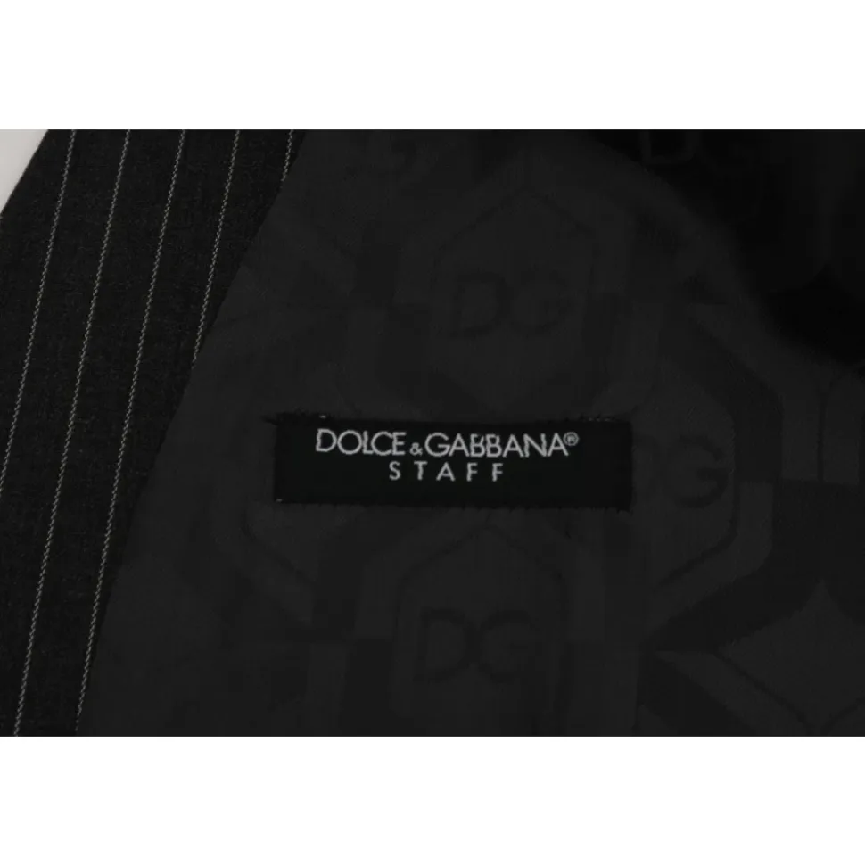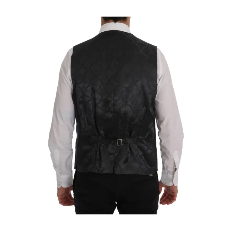 Løft din stil med denne luksuriøse vest fra Dolce & Gabbana. Denne enkeltknapvest i et klassisk gråt stribet design er perfekt til at tilføje et strejf af sofistikering til ethvert outfit og sikrer, at du efterlader et poleret indtryk til enhver begivenhed. Med en fuld knaplukning foran og en justerbar taljerem bagpå lover den en perfekt pasform og en slank silhuet. Det karakteristiske mærkelogo fuldender dette 100% autentiske stykke fra den seneste kollektion. Materiale: 97% uld, 3% elastan. For: 100% viskose. Farve: Grå. Oprindelsesland: IT.