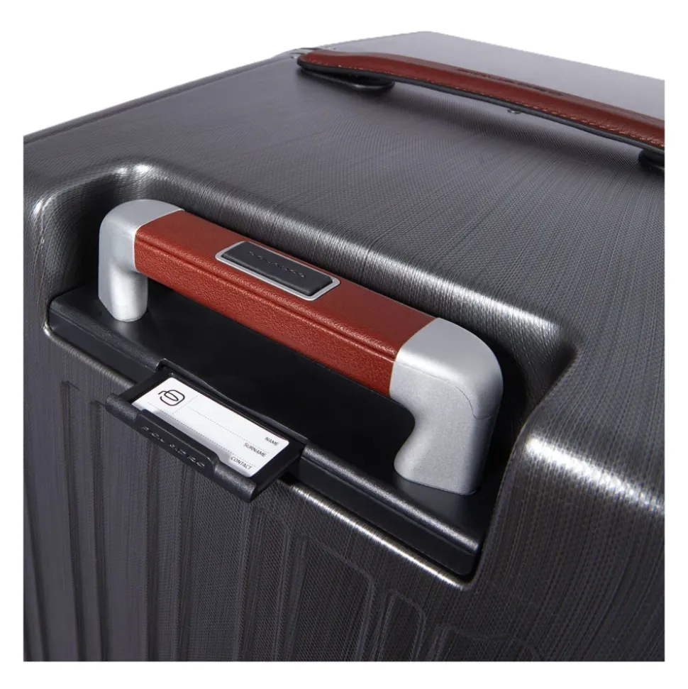 Rejs med stil med denne Piquadro Large Suitcase til mænd. Lavet af 100% polycarbonat ydre og polyester indre med læderfinish, er denne kuffert både holdbar og stilfuld. Den har teleskopiske håndtag, en TSA integreret kombinationslås, 4 hjul og rigelig opbevaringsplads med forskellige rum. Det elegante sort og tan design med forstærkede håndtag gør det til et praktisk og moderigtigt valg til dine rejser.