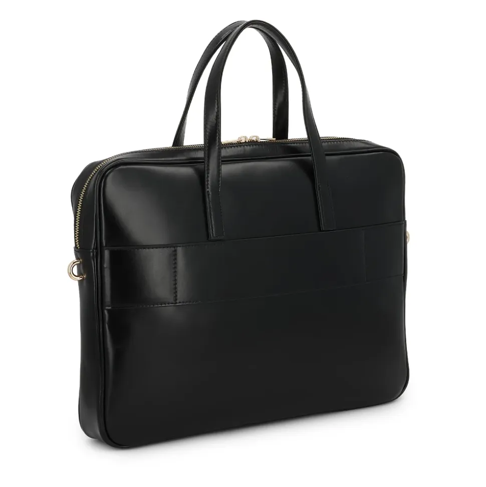 Denne elegante sorte laptop-taske lavet af høj kvalitet naturlæder er perfekt til dem, der værdsætter klassisk og professionel stil. Den glatte, let skinnende overflade giver den et luksuriøst præg, og den omhyggeligt færdige form understreger dens tidløse design. Modellen er udstyret med to robuste håndtag til bæring i hånden og et funktionelt, rummeligt interiør, der sikkert holder en bærbar computer og essentielt tilbehør. Det hele suppleres med subtile guldfarvede detaljer – lynlåse, spænder og logo – som tilføjer sofistikering og elegance til tasken. Den klassiske sorte taske er det perfekte valg til arbejde, forretningsmøder eller forretningsrejser – et praktisk og stilfuldt garderobeemne for den moderne professionelle. Produkt detaljer: Hovedrummet lukkes med lynlås. Indvendigt er der en lynlåslomme og en tryklåslomme. Der er en lomme på forsiden af tasken. Remmen er aftagelig og justerbar.