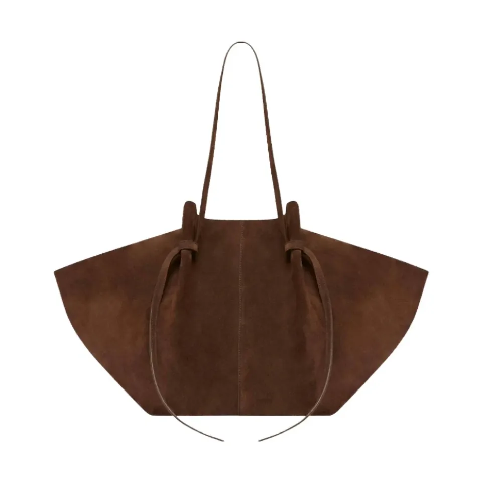 Forøg din stil med YUZEFI Large Mochi Suede Tote Bag i Chocolate. Denne elegante totebag, inspireret af organiske kurver, er lavet af luksuriøst italiensk ruskind. Alsidig at bære som håndtaske eller over skulderen, den har en magnetisk lukning og et rummeligt interiør til alle dine daglige fornødenheder. Materiale: 100% BOVINE LEATHER. Mål: Topbredde 51 cm, Bundbredde 18,5 cm, Bundlængde 26,5 cm, Højde 31 cm.