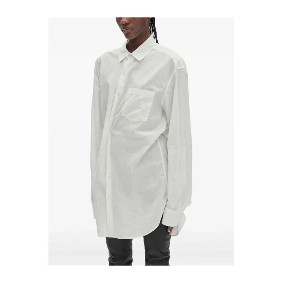 Ann Demeulemeester Elisabeth Lang Høj Komfort Lomme Skjorte kombinerer afslappet skræddersyning med en karakteristisk asymmetrisk lukning og en indvendig bindebånd for justerbar formning. Vigtige egenskaber: Hvid | Bomuld | Åndbart stof | Knaplukning | Indvendig bindebånd | Enkelt brystlomme | Asymmetrisk lukning | Lange ærmer | Dimensioner og pasform: Oversized pasform | Sammensætning og pleje: 100% bomuld | Maskinvask kold, skånsom cyklus. Må ikke bleges. Stryg ved lav varme. Hængetørres.