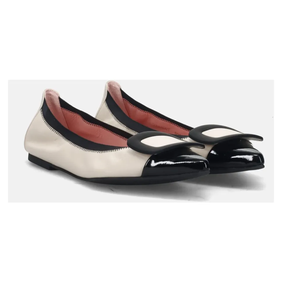 Træd ind i elegance med Ella Ballerinaer, inspireret af jazzlegenden Ella Fitzgerald. Disse sko kombinerer en feminin silhuet med edgy detaljer for et fashionabelt look. Produkt detaljer: Elfenben | Sort | Læder | Tilspidset tå | Gummisål | Chic spædedetalje | Dimensioner og pasform: Almindelig pasform | Sammensætning og pleje: Læder | Laklæder | Aftørres med en fugtig klud