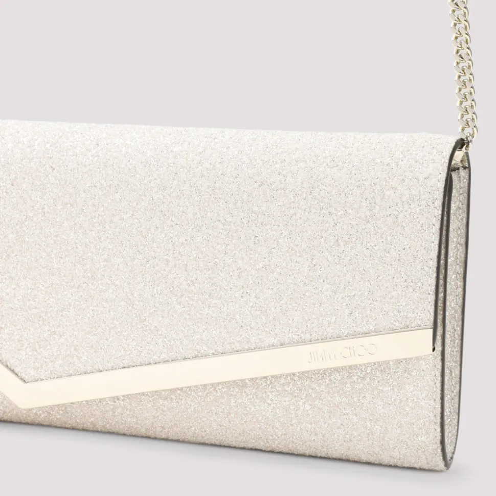 Jimmy Choo Emmie Clutch kombinerer en kompakt kuvert-silhuet med glitterlæder-accenter for et raffineret aftenlook. Dens slanke profil og aftagelige kæde gør den velegnet til både at blive holdt i hånden og som skuldertaske. Vigtigste egenskaber: Lys blød guld | Læder | Aftagelig kædestrop | Magnetisk trykknaplukning | Indvendig lynlåslomme | Kortlommer (6) | Kuvert-silhuet | Glitterfinish | Klaplukning | Poleret metalhardware | Dimensioner og pasform: B: 22 cm H: 12 cm D: 3 cm | One size | Sammensætning og pleje: Læder | Stof | Messinghardware | Opbevares i dustbag, når den ikke er i brug.