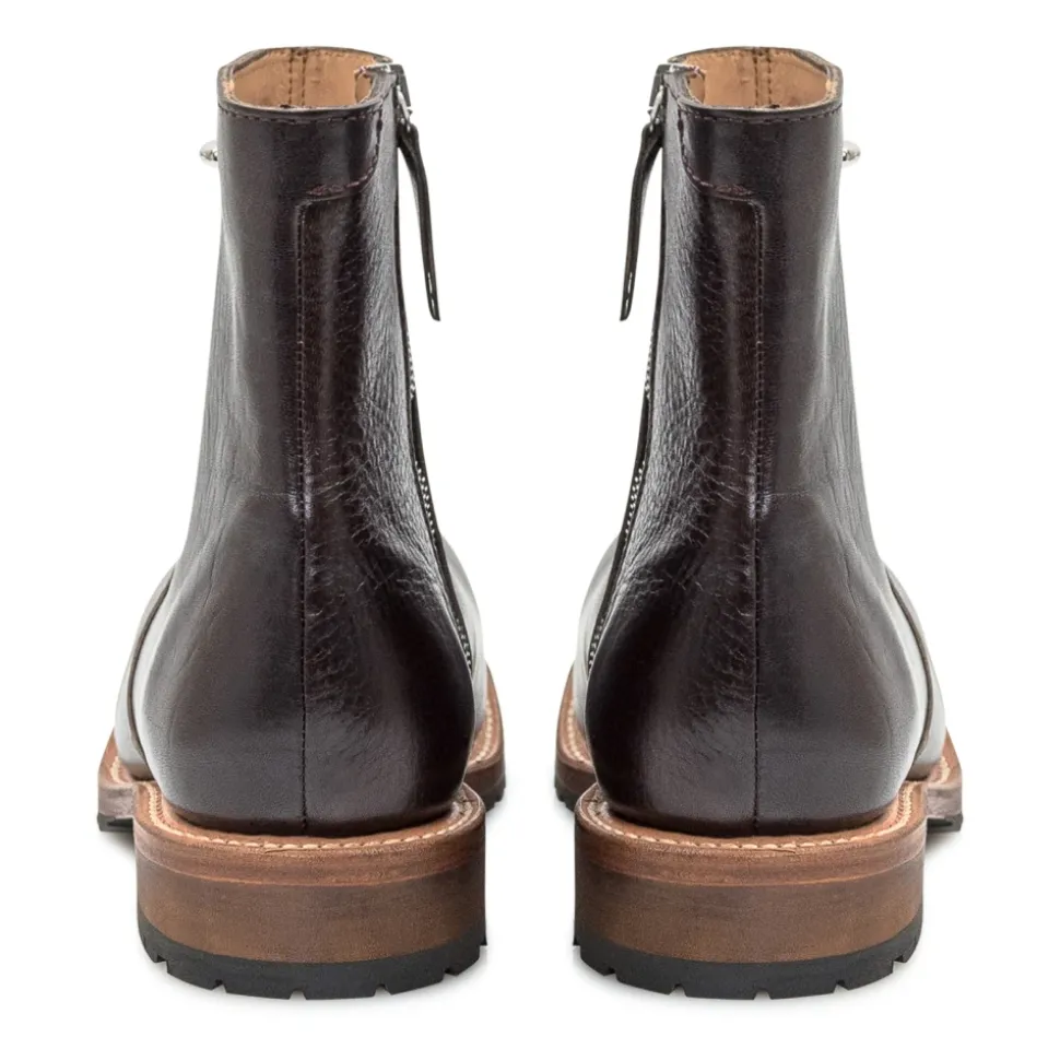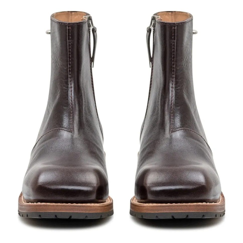 Vores Legacy Engine Boot kombinerer italiensk læderhåndværk med en robust Vibram-sål med knopper og en Lampo-side lynlås, der tilbyder slidstærkt mid-cut fodtøj designet til hverdagsbrug og nem på- og aftagning. Vigtige egenskaber: Brun | Deep Americano | Læder | Vibram-sål med knopper for godt greb | Lampo-side lynlås | Kilger læder mellemsål | Metal Our Legacy nitte | Mid-cut silhuet | Let afrundet tå | Synlige stikninger | Kontrasterende knopsål | Sammensætning & pleje: Italiensk læder (overdel) | Kilger læder (mellemsål) | Gummi (Vibram-sål med knopper) | Aftørres med en blød, tør klud; opbevares på et køligt, tørt sted.