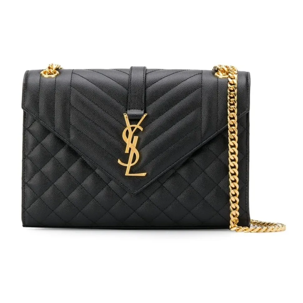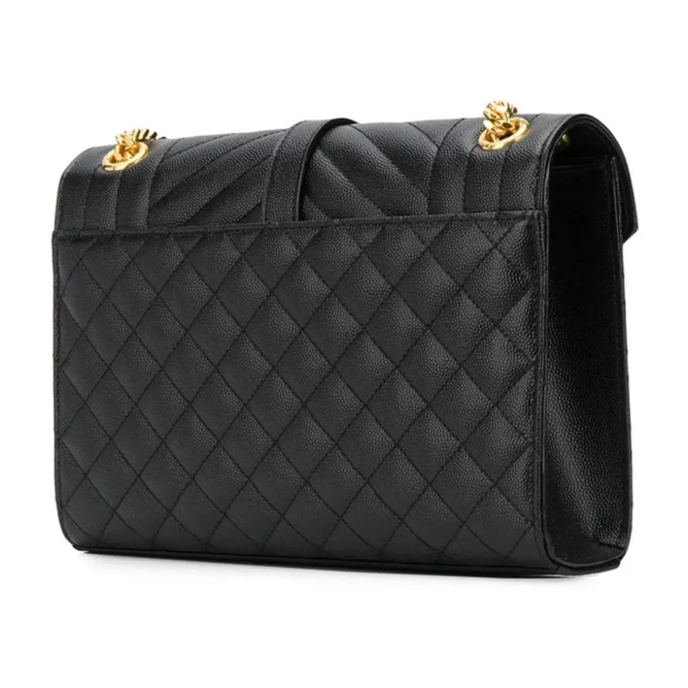 Saint Laurent Envelope Medium Taske er en raffineret skuldertaske, der er skabt til hverdagens elegance. Envelope-silhuetten og den justerbare kæderem gør den til en alsidig mulighed fra dag til aften. Vigtigste egenskaber: Sort | Læder | Justerbar skulderrem i kæde og læder | Magnetisk trykknaplukning | Udvendig baglomme | Indvendig slip lomme | Envelope-silhuet | Quiltet tekstureret læder | Mål og pasform: Bredde: 24 cm | Højde: 17.5 cm | Dybde: 6 cm | Rem: 116 cm | Sammensætning og pleje: 100% Læder