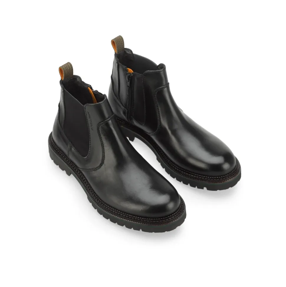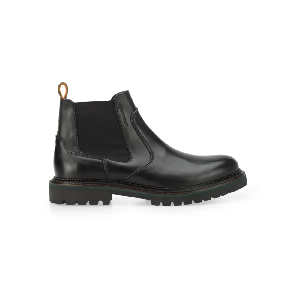 Robust Chelsea-støvle med en udtryksfuld kommandosål. Elastisk sidepanel og tekstureret gummihælpanel.