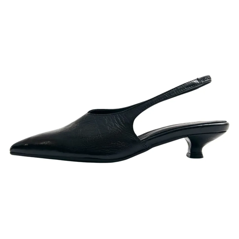 ALOHAS Eros Læder Mules kombinerer en skarpt tilspidset tå med en lav hæl og en elastisk slingback for et raffineret, komfortabelt look, der er velegnet til brug fra dag til aften. Vigtige egenskaber: Sort | Nero | Læder | Anti-slip hælspids | Elastisk slingback-rem | Polstret læderfodseng | Spids tå | Krøllet læderfinish | Lang vamp | Lav hæl | Mål og pasform: Hælhøjde: 4 cm | Sammensætning og pleje: Overdel: 100% okselæder | Foring og indersål: 100% gedelæder | Ydersål: 100% cuerolite | Hardware: 100% zamak ( finish) | Tørres af med en blød klud; undgå at læderet bliver vådt. Plej regelmæssigt med en passende læderbalsam, og lad det tørre naturligt væk fra direkte varme.
