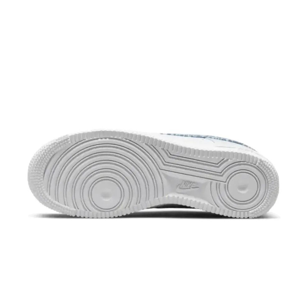 Forkæl dine fødder med Nike Air Force 1 Low ’07 Essential White Worn Blue Paisley. Denne stilfulde version af den ikoniske Air Force 1 har et unikt farveaccent med et slidt blåt paisleymønster, der tilføjer et strejf af elegance til det klassiske hvide læderoverdel. Paisley-mønsteret ses på Swoosh-logoet og hælkappen, hvilket skaber en iøjnefaldende kontrast mod den hvide baggrund. Disse sneakers bevarer de klassiske træk fra den originale Air Force 1, herunder perforeringer til ventilation og en solid Nike Air-støddæmpende mellemsål for hele dags komfort. Den holdbare gummisål sikrer langvarig slidstyrke og fremragende greb. Nike Air Force 1 Low ’07 Essential White Worn Blue Paisley kombinerer en tidløs silhuet med moderne detaljer og er et populært valg blandt sneaker-entusiaster, der tilføjer et strejf af elegant stil til både afslappede og formelle outfits.