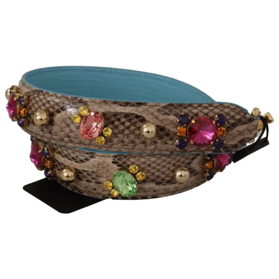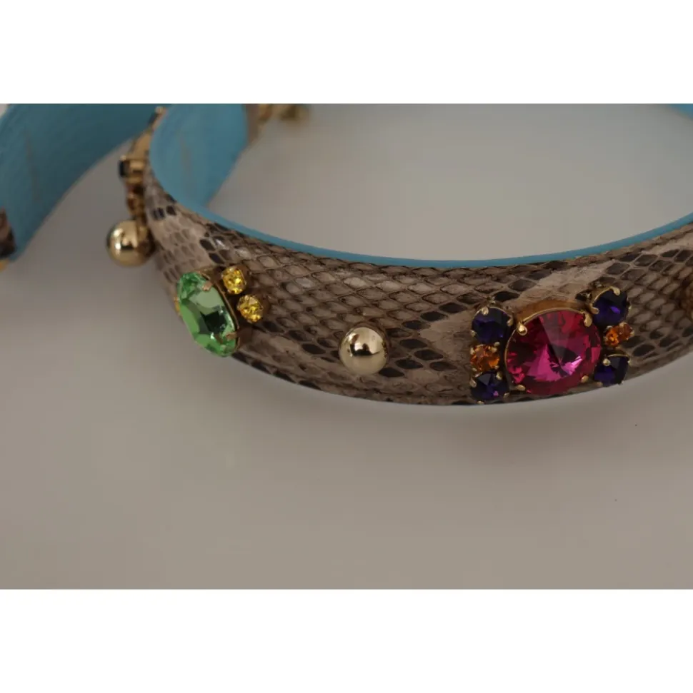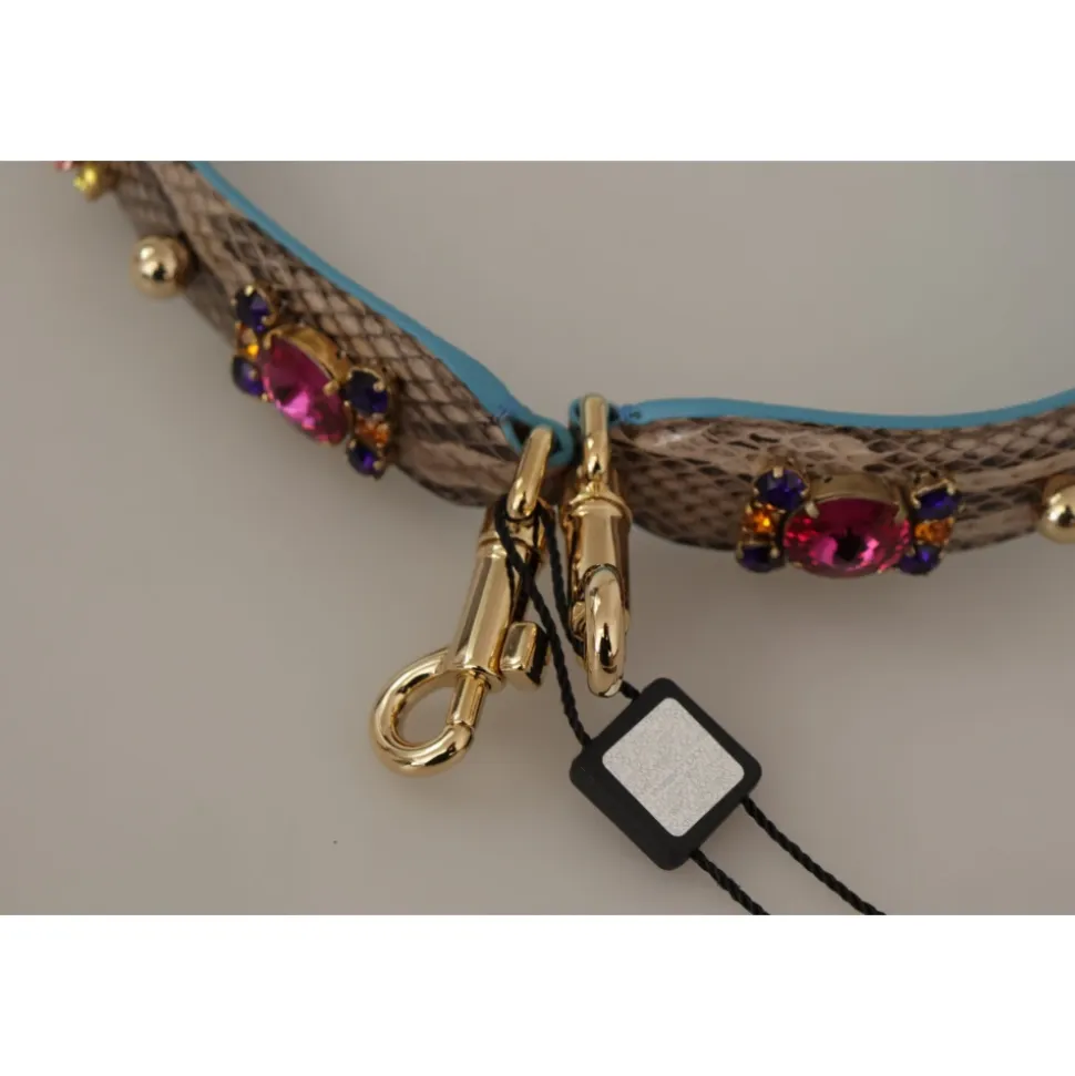 Dolce & Gabbana Exotic Leather Crystals Skulderrem tilfører krystalbesat luksus til håndtasker, fremstillet i pythonlæder med guldfarvet hardware for nem fastgørelse. Nøgleattributter: Brun | Guld | Pythonlæder | Aftagelig med guldfarvede karabinlåsfæstninger | Krystaludsmykning | Guldfarvet hardware | Eksotisk pythontekstur | Dimensioner & pasform: 70 cm x 3 cm | Sammensætning & pleje: 100% Pythonlæder