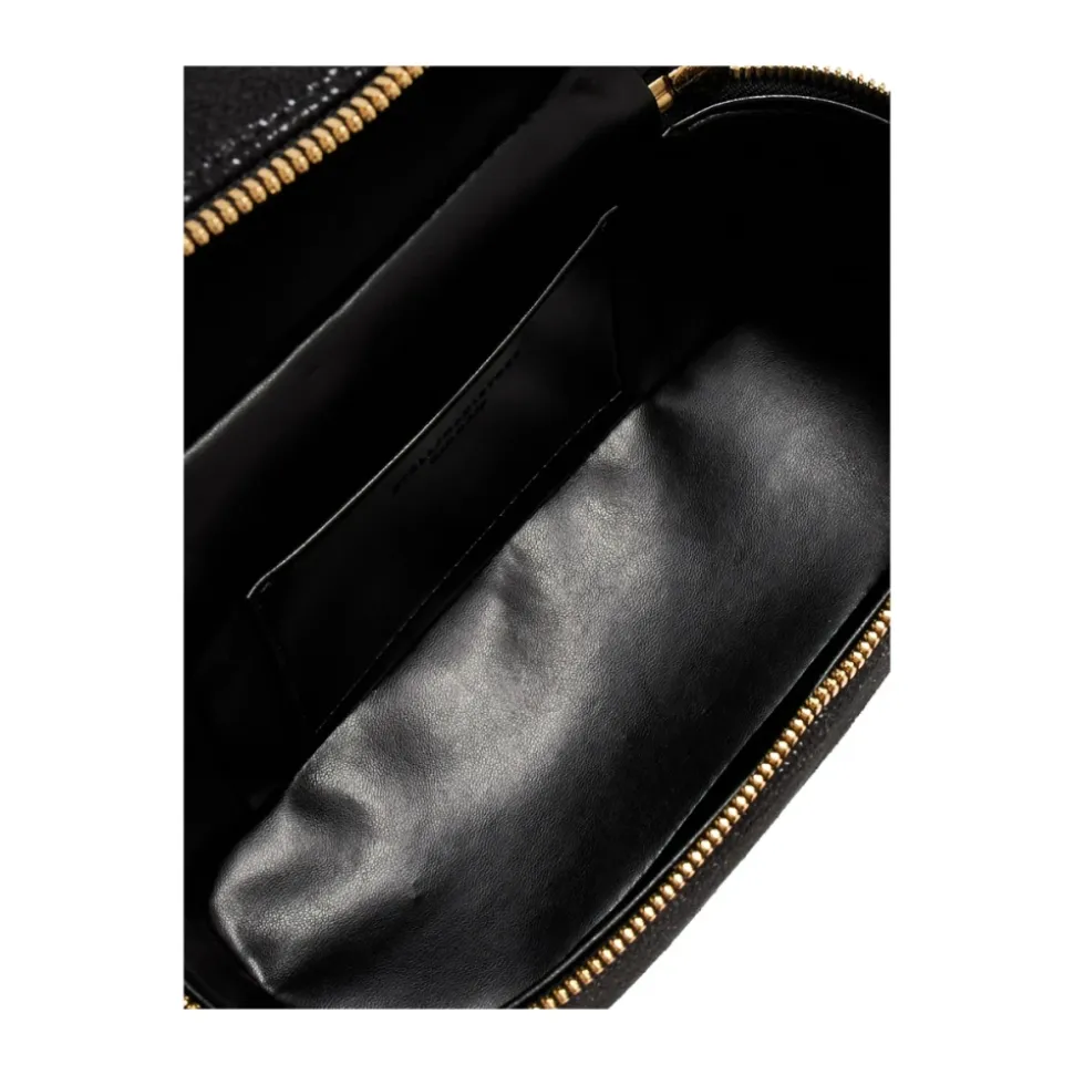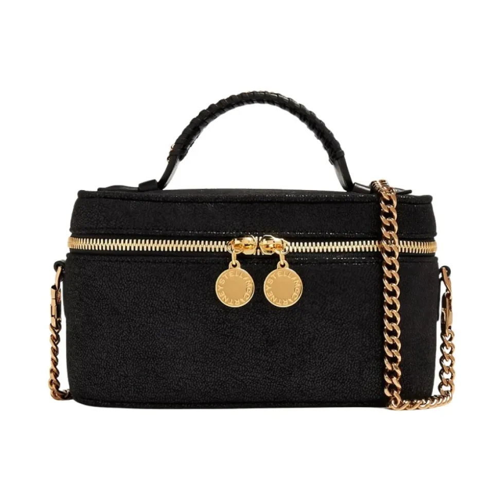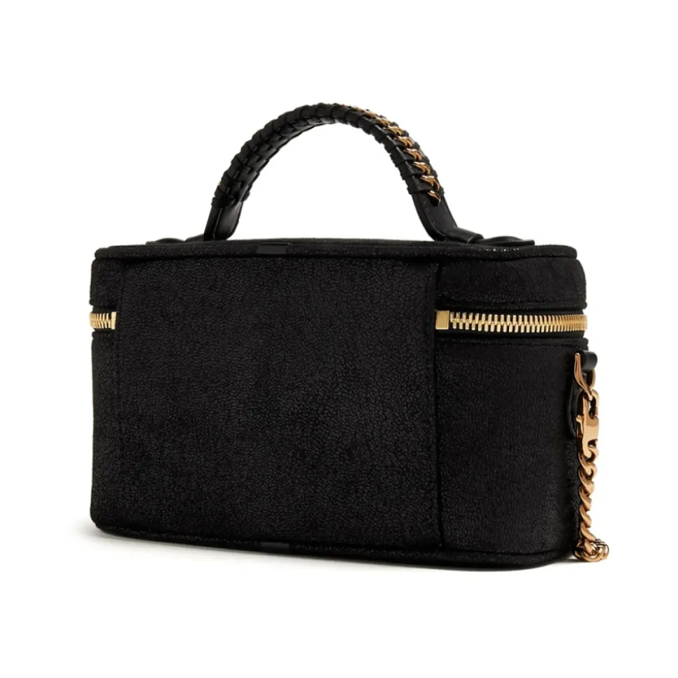 Stella McCartney Falabella Vanity Case er en kompakt kosmetiktaske, der fremviser brandets signaturkædedetaljer. Ideel til organisering af makeup og småting, den kombinerer en lynlåslukning hele vejen rundt med et flettet tophåndtag og en aftagelig kæderem for alsidig transport. Vigtigste egenskaber: Sort | Mat Shaggy Deer-stof | Lynlåslukning hele vejen rundt | Enkelt flettet tophåndtag | Aftagelig skulderrem med kædeled | Hovedrum | Indvendig stiklomme | Indvendigt logotryk | Sort tekstureret finish | Kædeleddetaljer | Logo charm | Guldfarvet hardware | Flettet tophåndtag | Dimensioner og pasform: Dybde: 8,0 centimeter | Højde: 11,0 centimeter | Bredde: 19,0 centimeter | Sammensætning og pleje: 100% polyester | Pletrensning kun med en blød, fugtig klud.