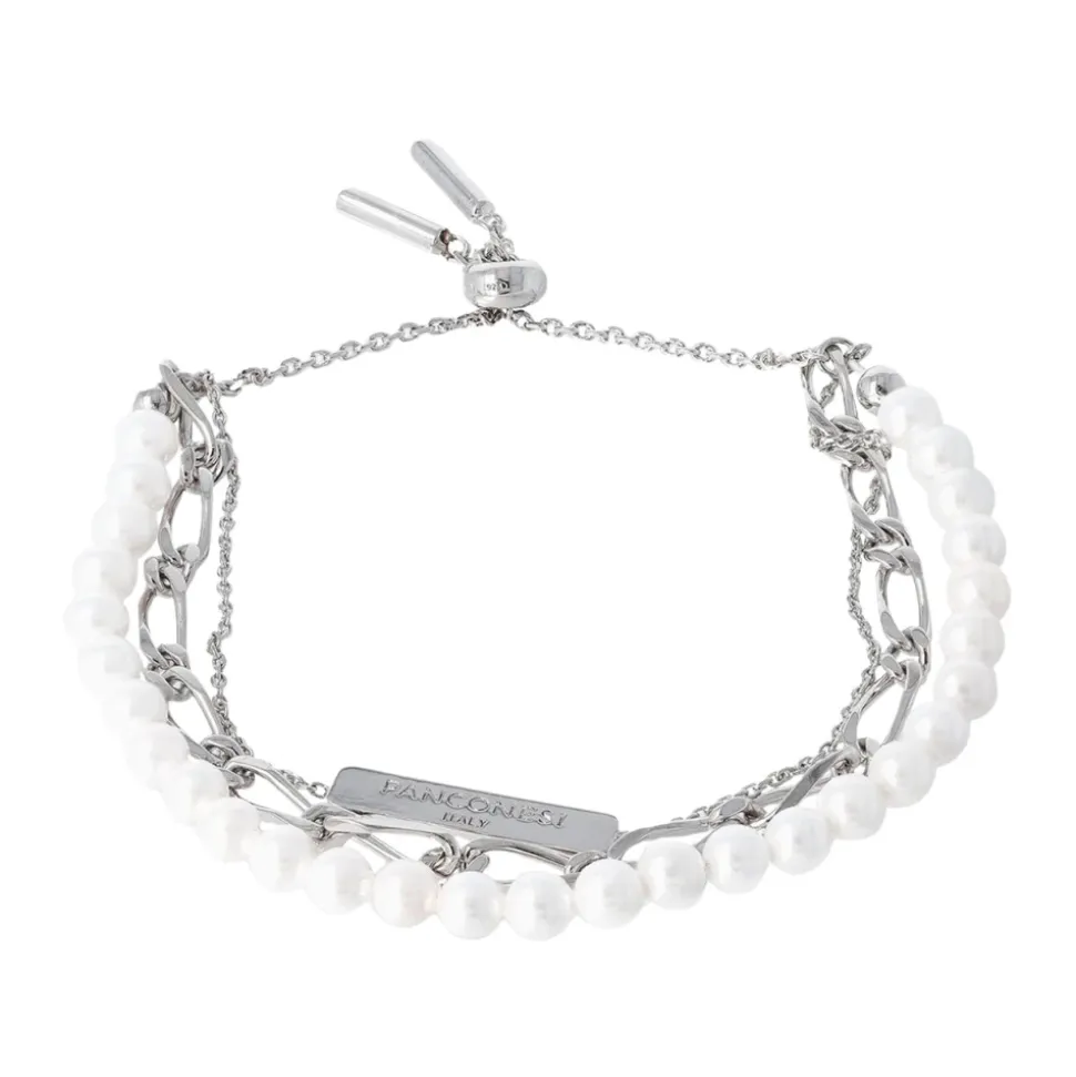 Panconesis Famiglia Perla Armbånd kombinerer rustfrit stål med en ferskvandsperle for et raffineret, minimalistisk look. Ideel til hverdagsbrug eller diskret lagdeling med andre armbånd. Vigtigste egenskaber: Grå | Sølv | Rustfrit stål | Ferskvandsperledetalje | Armbånd i rustfrit stål | Sammensætning & pleje: Rustfrit Stål | Ferskvandsperle