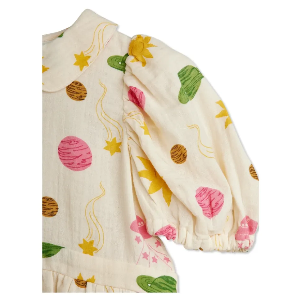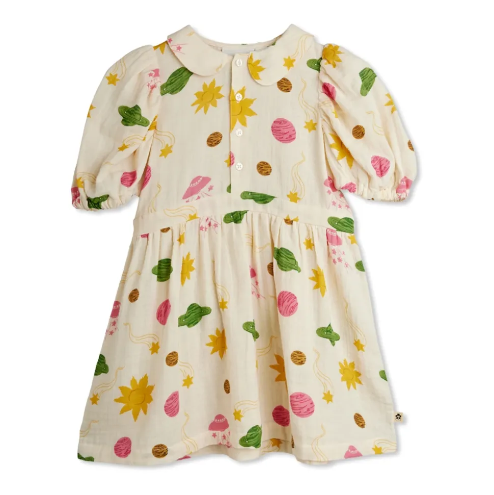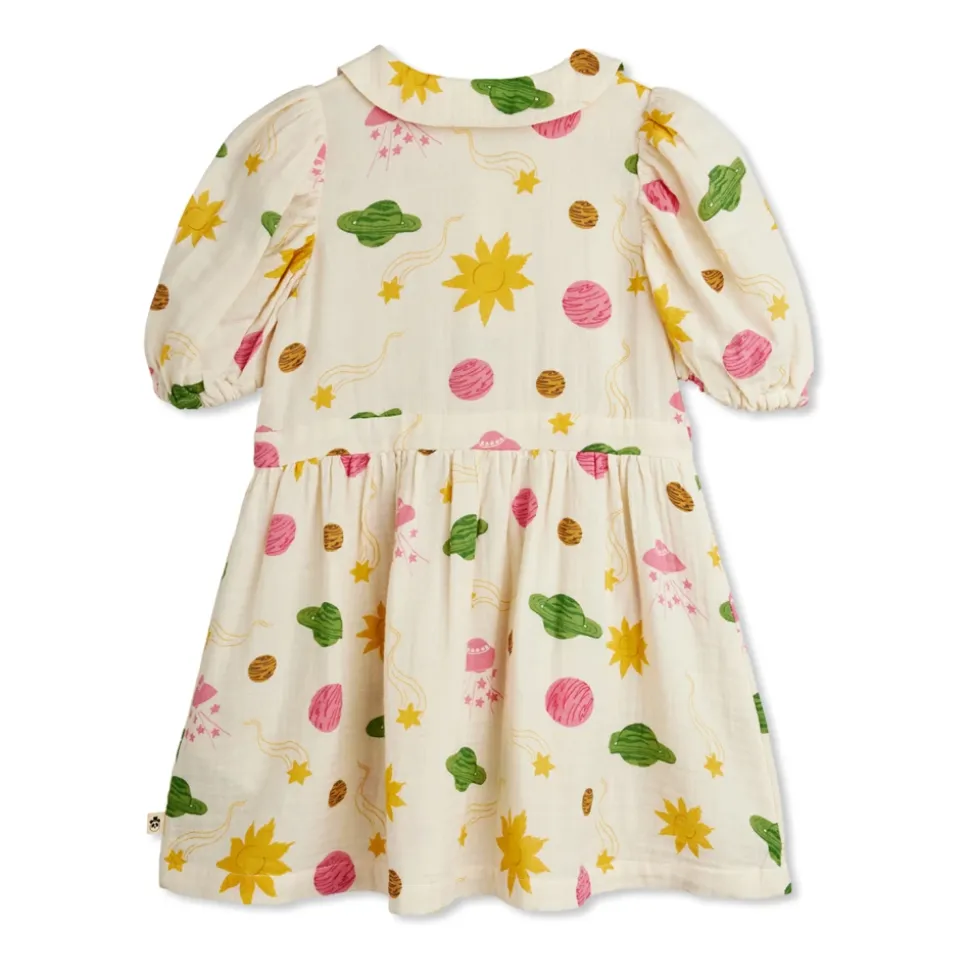 Mini Rodini Farverig Kjole med Print kombinerer et detaljeret kosmisk print med en blød bomuldskonstruktion for nem hverdagsbrug. Designet balancerer legende mønstre med raffinerede detaljer for en tidløs, komfortabel silhuet. Nøgleattributter: Beige | Creme | Bomuld | Blød overflade | Åndbart stof | Knaplukning bagpå | Elastiske ærmekanter | Defineret taljesøm | Peter Pan-krave | Pufærmer med elastiske manchetter | Let udstillet skørt | Kosmisk print med planeter, sole, stjerner og kometer | Farvekoordinerede knapper bagpå | Taljesøm | Dimensioner og pasform: Afslappet pasform | Let udstillet silhuet | Sammensætning og pleje: 100% bomuld | Maskinvask ved 40°C.