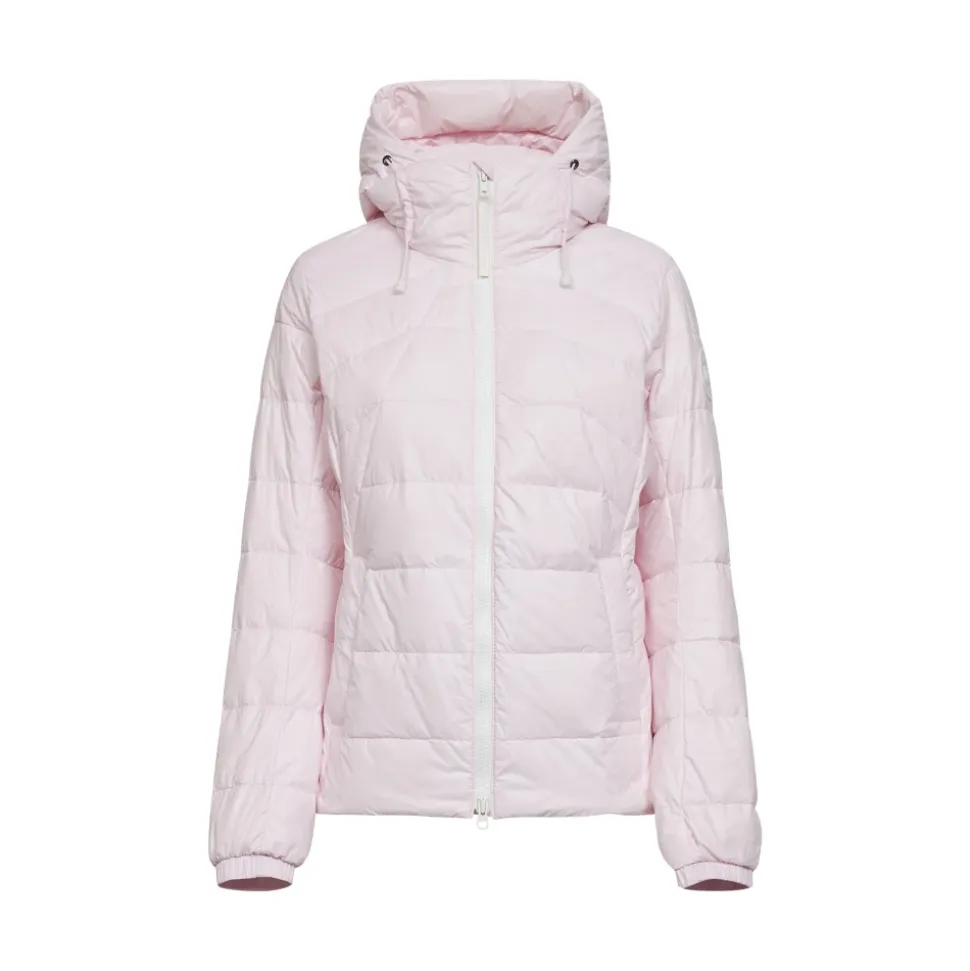 Canada Goose Feather-Light Jacket er et let, isolerende yderlag, der kan pakkes sammen, designet til rejser i koldt vejr og hverdagsbrug. Den kombinerer 750 fill power dun med en vandafvisende og vindtæt skal for letvægtsvarme. Nøgleattributter: Pink | Bloom pink | Polyamid | Vandafvisende | Vindtæt | Letvægt | Isolerende (750 Fill Power dun) | Dobbelt lynlåslukning foran | Vatteret hætte med justerbar snøre | Sidelommer med skjult trykknaplukning | Kan pakkes ned i indvendig venstre lomme; omdannes til en pose med snøre og bærestrop | Elastiske manchetter | Kiler under armene | Foret | Lange ærmer | Hvidt Disc-logo patch på venstre ærme | Skjulte trykknaplukninger på sidelommer | Fremstillet i Canada | Dimensioner og pasform: Slim fit | Sammensætning og pleje: 100% Polyamid | 750 Fill Power dun