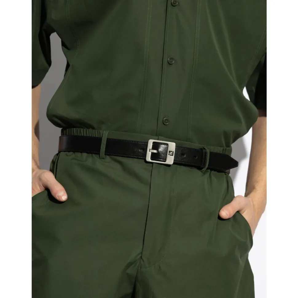 Fendi FF Monogram Buckle Leather Belt er et raffineret tilbehør, der defineres af dets perforerede FF-accent spænde. Designet til et poleret hverdagslook, og kan kombineres med bukser og kjoler for en struktureret finish. Vigtigste egenskaber: Sort | Læder | Pin-spænde lukning | Perforeret FF detalje på spænde | Burnished palladium-finish metaldele | Læderfinish med lav glans | Dimensioner og pasform: Bredde: 3 cm | Sammensætning og pleje: 100% kalveskind